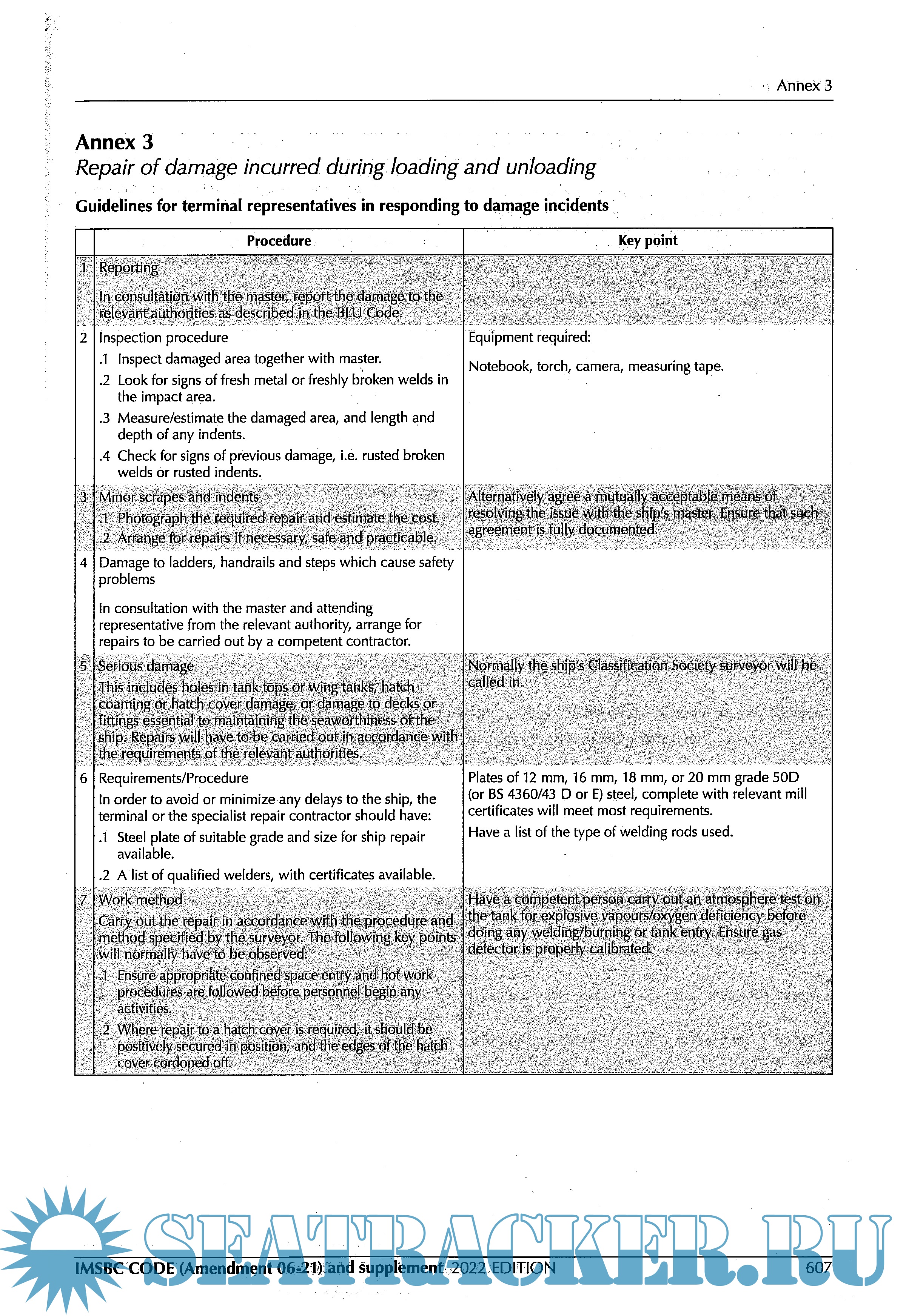 Description: The primary aim of the International Maritime Solid Bulk Cargoes Code (IMSBC Code), which replaces the Code of Safe Practice for Solid Bulk Cargoes (BC Code), is to facilitate the safe stowage and shipment of solid bulk cargoes by providing information on the dangers associated with the shipment of certain types of solid