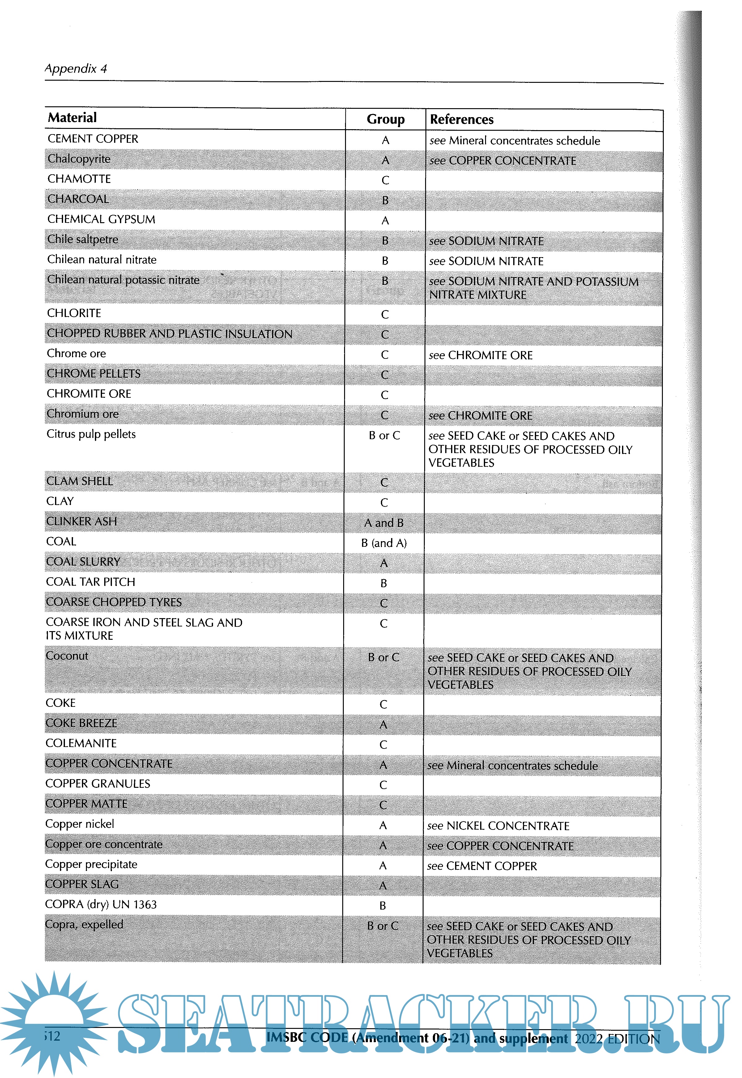 • Modifications to various existing individual schedules for solid bulk cargoes.