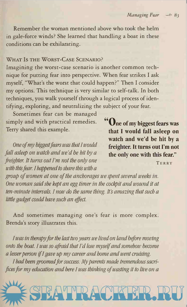 Year: 2001 Language: english Author: Debra Cantrell Genre: Guide Publisher: International Marine Publishing Edition: First ISBN: 978-0071427890 Format: PDF & EPUB Quality: Scanned pages Pages count: 195 Description: When her husband proposed living on a boat full-time, Debra Cantrell wondered what other women in her position had done and began a five-year study to find out what choices they had made and how it had all worked out. The result is Changing Course, a guidebook for navigating this odyssey. No matter what the outcome, each woman was strengthened by the experience. In an era when "downshifting" is common and people are considering the benefits of simplified living, Changing Course is both timely and practical. "The essential first step for all couples planning to sail away; this is a must-read."--Paul and Sheryl Shard, authors of "Sail Away!" ""Changing Course" is the first book that honestly evaluates the transition to life afloat."--Beth Leonard, author of "The Voyager's Handbook" Debra Ann Cantrell faced a dilemma when her husband proposed living and cruising on a boat. She would lose a career she loved and, she feared, everything by which she'd defined herself. She wondered how others had made the decision to go cruising and how their choice affected their lives. Her search for answers led her to more than a hundred women, over a five-year period, whose partners had proposed the cruising life. "Changing Course" chronicles the odyssey of making a major lifestyle change from land to sea. This thought-provoking and highly personal book explores what women stand to gain when they set forth on such a journey--and what they stand to lose if they do not. Additional info: Debra Cantrell is an adult educator working with the native peoples of Canada--helping them develop self-government and social institutions. A large part of her job is facilitating workshops; she also trains counselors to deal with social problems such as alcoholism and child abuse. Her husband first started talking about longterm cruising in 1987, and they chartered in the Caribbean in 1987, 1991, and 1993. They bought their boat while on charter in 1993, and have since been easing into the cruising life with two-month cruises whenever possible. They made their first major offshore passage (U.S. Virgins to the Chesapeake) in 1997. Meanwhile, in her doctoral program in Adult Education, Cantrell wrote her dissertation on women embracing the cruising lifestyle. Through the internet and sailing magazines, she met and interviewed 107 women, following some 80 of them over a five-year period of their lives. Cantrell sees a conjunction between her professional work and her interest in cruising women--in both areas she has focused on holistic wellness, health and happiness achieved through challenge and change.