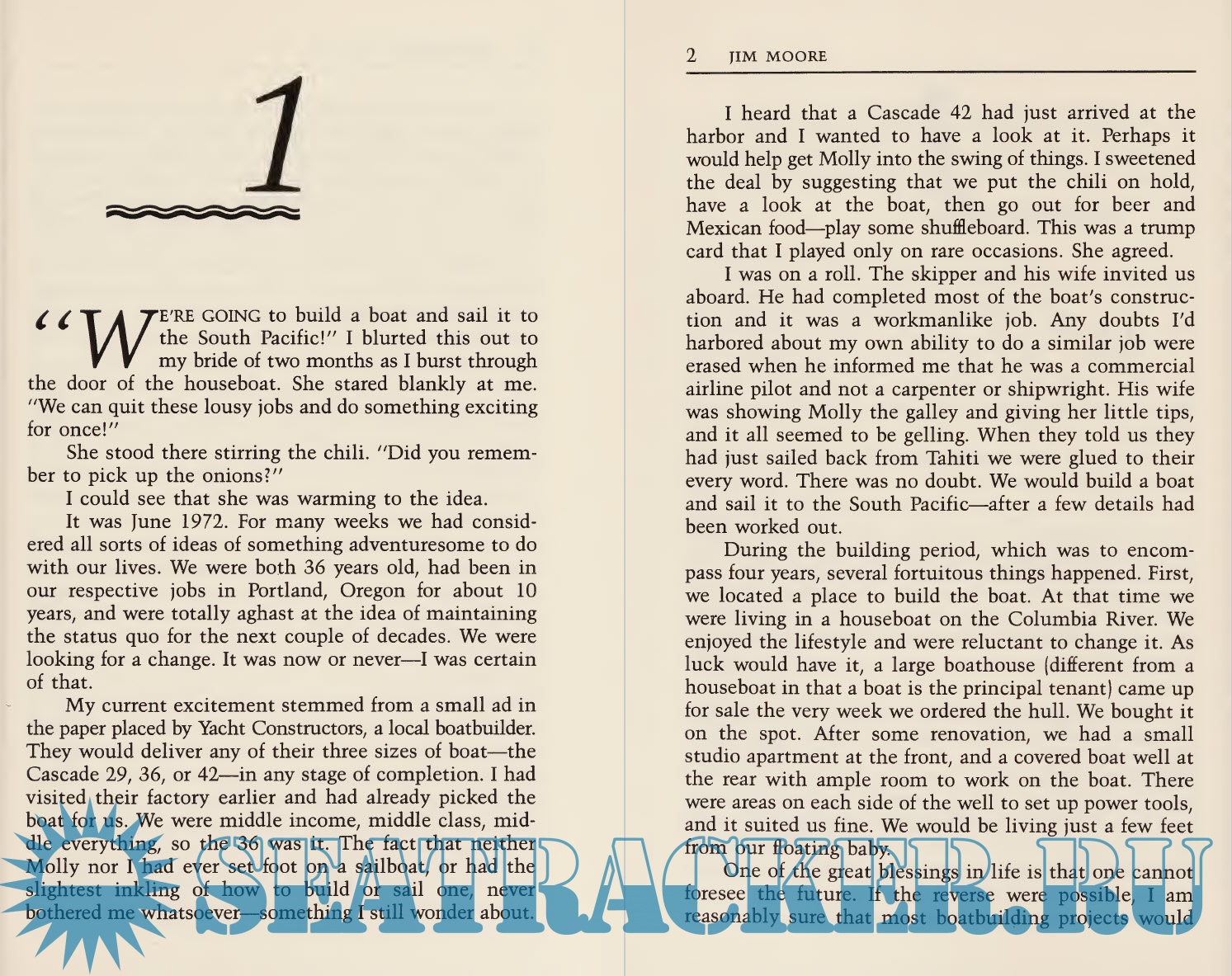 Description: The adventure begins when Jim Moore announces to his bride of two months that they will build a boat and sail to the South Pacific. Circumnavigating the world in a 36-foot sloop isn't generally regarded as an adventure to be taken lightly. However, lightly is just how Jim and Molly Moore took it and the story of their journey provides refreshing and amusing inspiration to all cruising sailors, actual or potential.