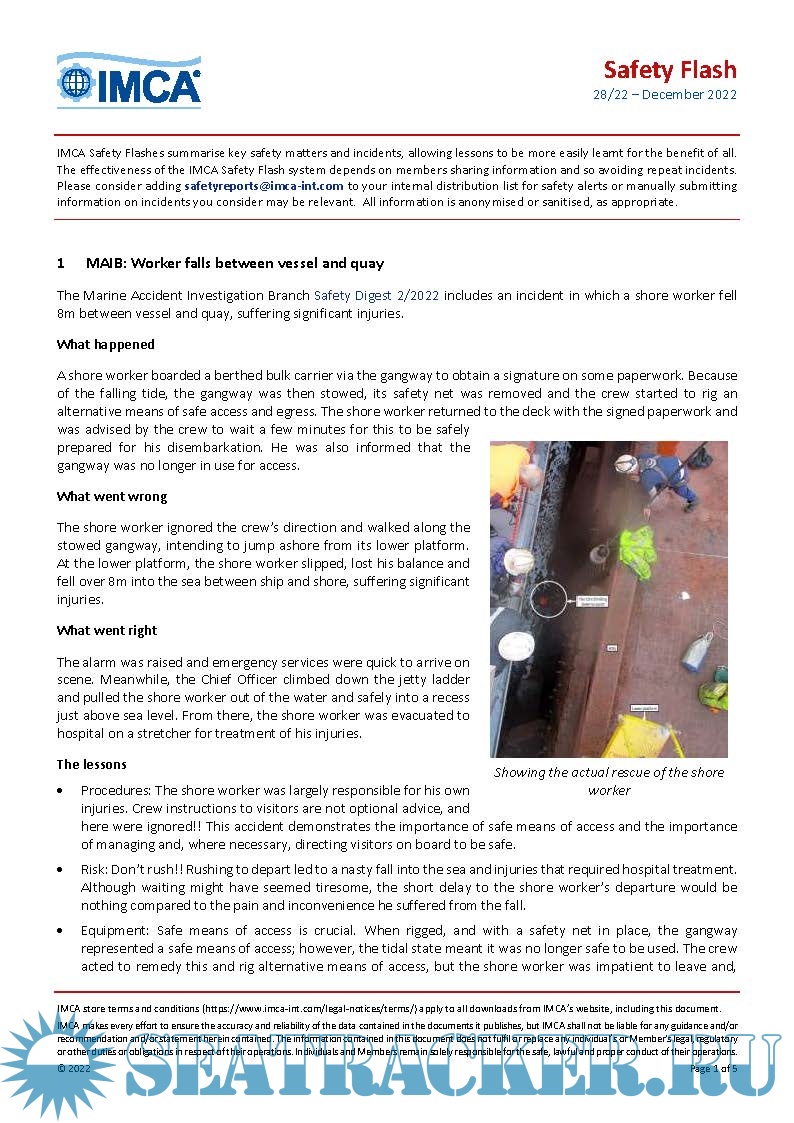 IMCA SF 28/22• MAIB: Worker falls between vessel and quay