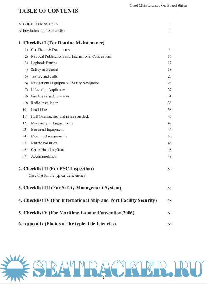 Description: Checklist for routine maintenance on board ships including