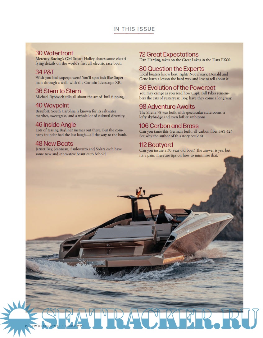 Year: 2023 Language: english Author: DANIEL HARDING JR. Genre: Periodical (magazine) Publisher: Active Interest Media (Cruz Bay Publishing Inc) Edition: February 2023 Format: PDF Quality: Photo of pages Pages count: 176 Description: Power & Motoryacht is the leading marine magazine for powerboat owners with boats over 25 feet. Each issue is fact-packed with information on boats and boat maintenance, new boating equipment, advice, and filled with beautiful color photography of the latest boats and boating destinations.
