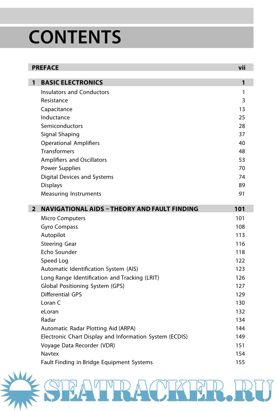 The book introduces basic electronics, the theory of how a range of navigational aids works, and radio communications including GMDSS. Fault find to component and sub system level is also included.