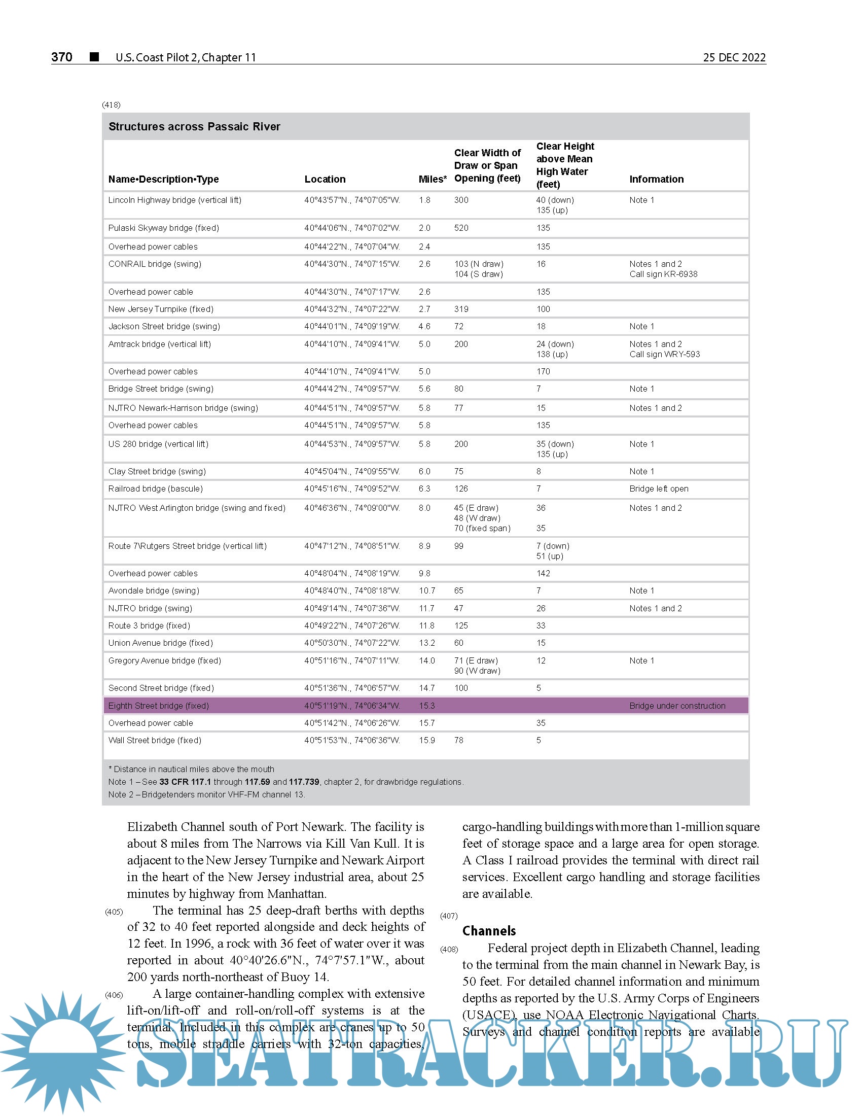 Topics in the Coast Pilot include channel descriptions, anchorages, bridge and cable clearances, currents, tide and water levels, prominent features, pilotage, towage, weather, ice conditions, wharf descriptions, dangers, routes, traffic separation schemes, small-craft facilities, and Federal regulations applicable to navigation.