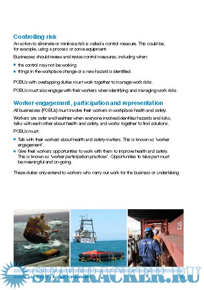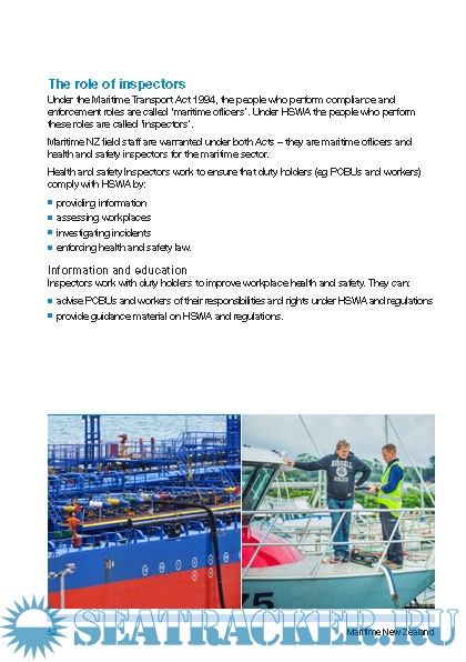 Year: 201x Language: english Author: Maritime New Zeland Genre: Guide Format: PDF Quality: eBook Pages count: 72 Description: This guide provides information about your responsibilities under the Health and Safety at Work Act 2015 (HSWA). This is your essential guide to meeting your health and safety obligations. It is relevant for everyone working in the maritime sector including: -Owners -Operators -Skippers -Crew -Stevedores -Jet boat drivers -Rafting guides -Self-employed crew, including sharefishers -Anyone who employs or contracts crew -Any other person who works on board, or employs or contracts someone to work on board a ship -Designers, manufacturers, importers, suppliers and installers of ships and plant and equipment on ships.