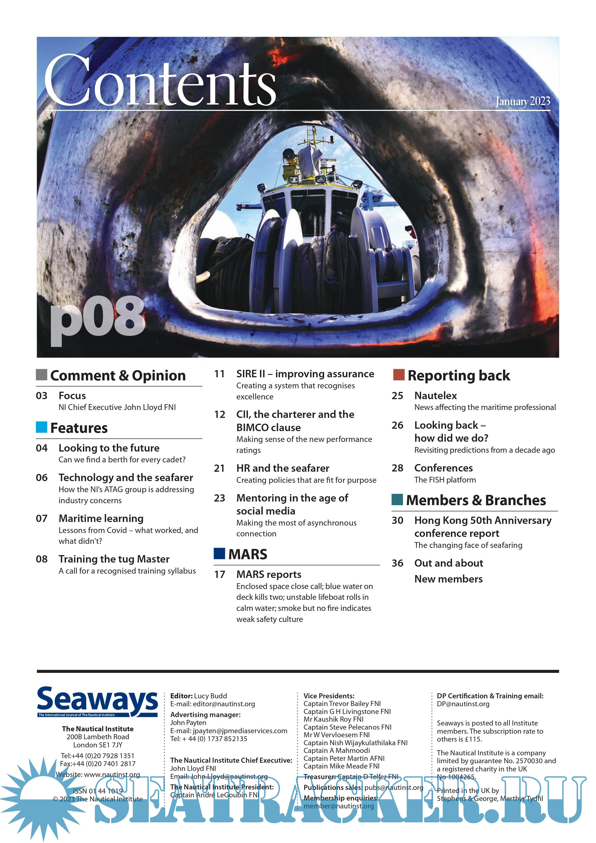 Seaways Recognised as one of the leading maritime journals, Seaways is sent out to all members monthly. It is the international journal of The Nautical Institute and has the most vibrant professional correspondence section to be found anywhere in the industry.