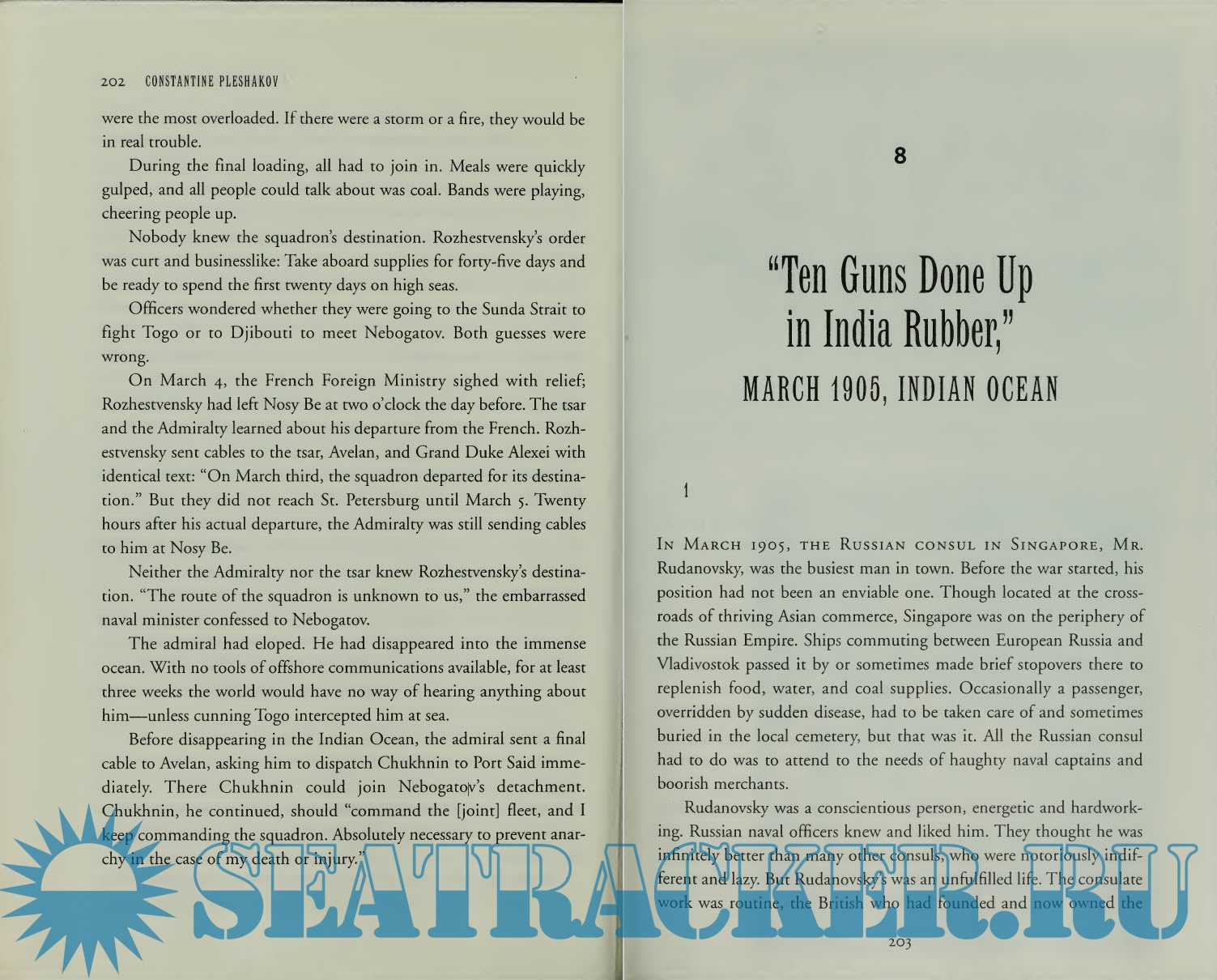 Year: 2002 Language: English Author: Constantine Pleshakov Genre: Textbook Publisher: Basic Books Edition: First ISBN: 978-0465057917 Format: PDF & EPUB Quality: Scanned pages Pages count: 436 Description: On May 14-15, 1905, in the Tsushima Straits near Japan, an entire Russian fleet was annihilated, its ships sunk, scattered, or captured by the Japanese. In the deciding battle of the Russo-Japanese War, the Japanese lost only three destroyers but the Russians lost twenty-two ships and thousands of sailors. It was the first modern naval battle, employing all the new technology of destruction. The old imperial navy was woefully unprepared. The defeat at Tsushima was the last and greatest of many indignities suffered by the Russian fleet, which had traveled halfway around the world to reach the battle, dogged every mile by bad luck and misadventure. Their legendary admiral, dubbed "Mad Dog," led them on an extraordinary eighteen-thousand-mile journey from the Baltic Sea, around Europe, Africa, and Asia, to the Sea of Japan. They were burdened by the Tsar's incompetent leadership and the old, slow ships that he insisted be included to bulk up the fleet. Moreover, they were under constant fear of attack, and there were no friendly ports to supply coal, food, and fresh water. The level of self-sufficiency attained by this navy was not seen again until the Second World War. The battle of Tsushima is among the top five naval battles in history, equal in scope and drama to those of Lepanto, Trafalgar, Jutland, and Midway, yet despite its importance it has been long neglected in the West. With a novelist's eye and a historian's authority, Constantine Pleshakov tells of the Russian squadron's long, difficult journey and fast, horrible defeat. Additional info: About the Author Constantine Pleshakov is a Russo-American author born in Yalta, Crimea, in 1959. A former foreign policy analyst at the Institute of U.S. and Canada Studies in Moscow, he emigrated to the United States in 1998. He teaches at Amherst College.