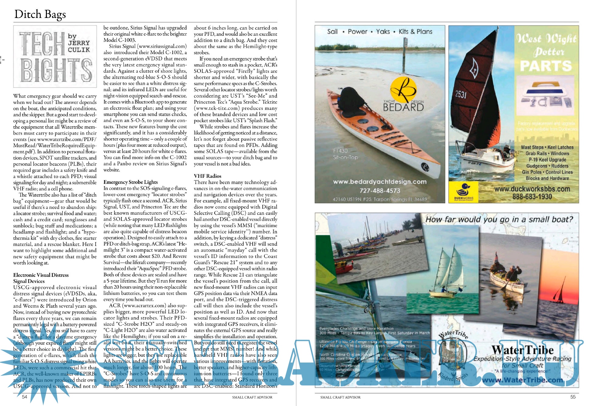 Description: Small boats, big adventure! The only magazine focused on small and trailerable sailboats, cruising, and adventure. Each issue features places to sail, how-to and modification articles, a plan study for the boat builder, and a feature-length review of a production sailboat.