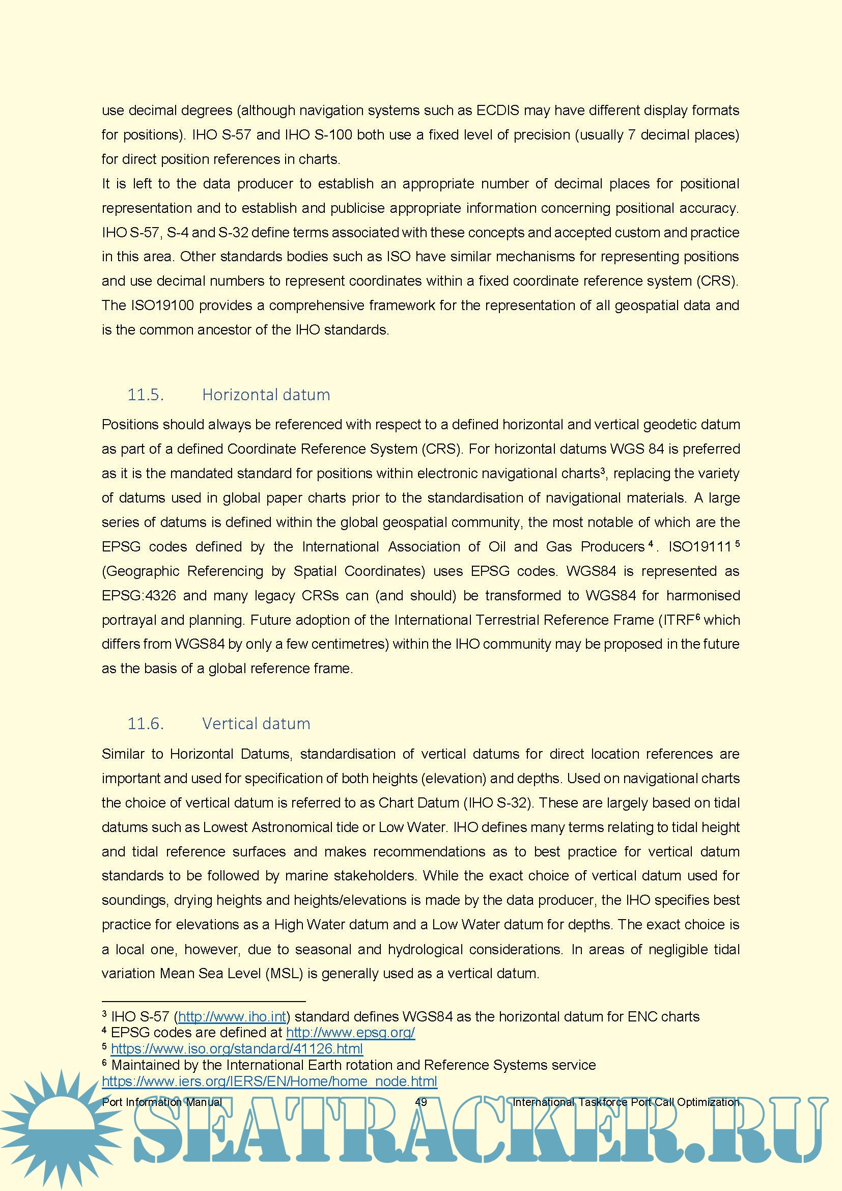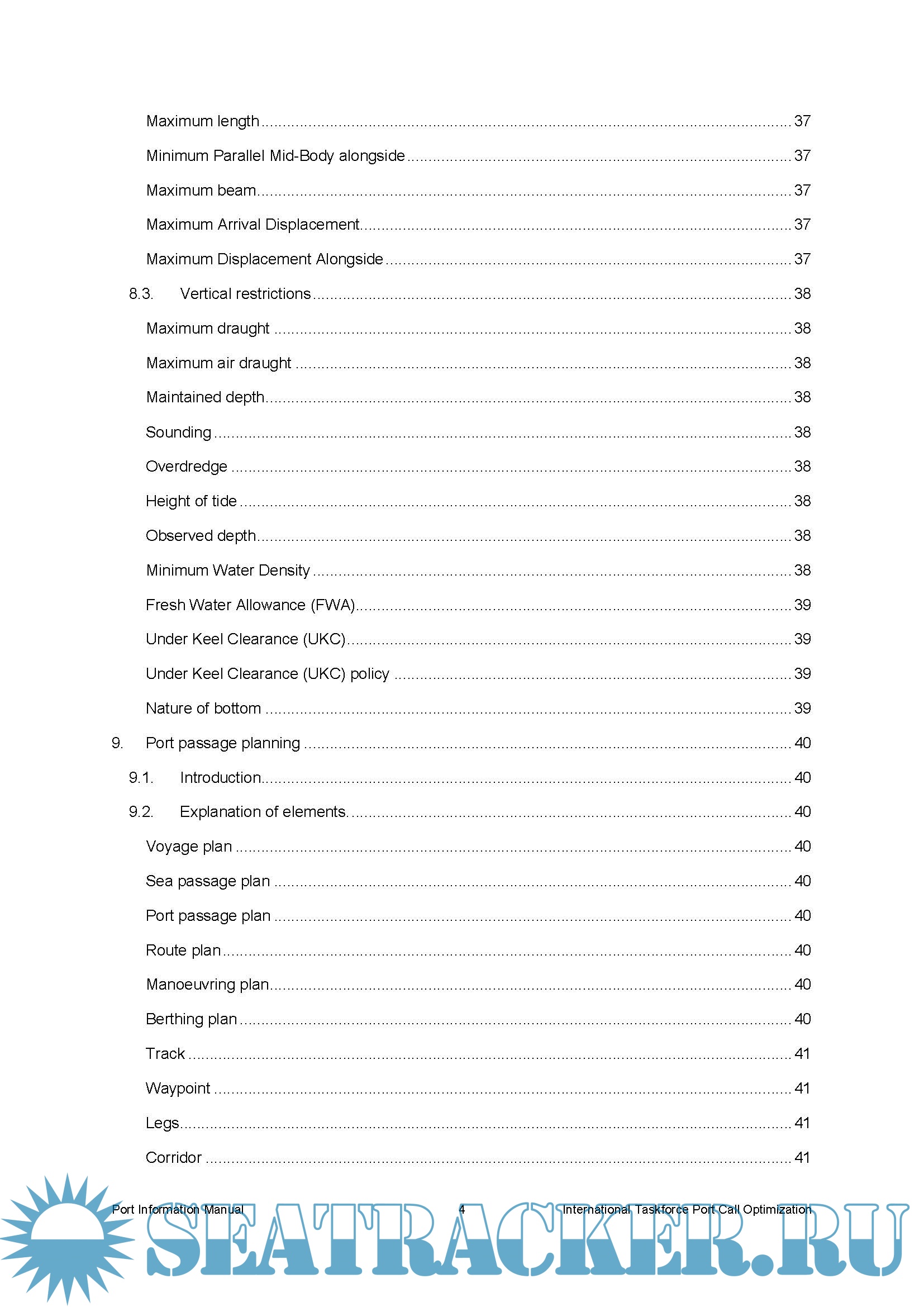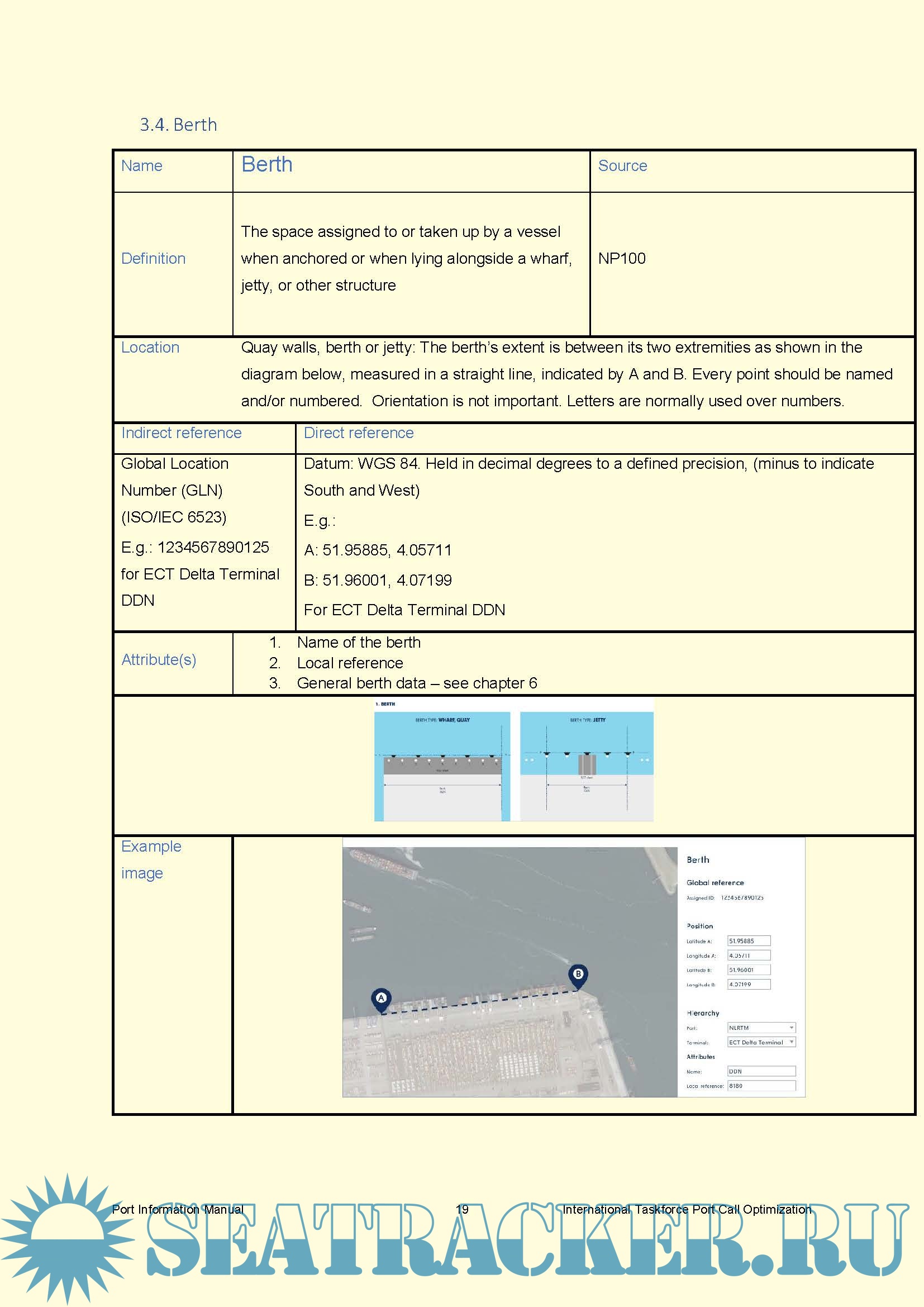 Description: This Port Information Manual (PIM) has been written for all parties with an interest in improving the data of ports, terminals and their berths. Ports can receive up to 55000 different ships and the global shipping industry operates in a network of up to 9000 different ports. In order to achieve optimization of both ports and shipping a minimum set of standards to connect all parties is needed. For environmental and commercial reasons both ports and shipping get more and more a sense of urgency to start using the right standards. Timing is also important as once data with non-compliant standards is implemented, it is more difficult to connect to the nautical or supply chain industry.