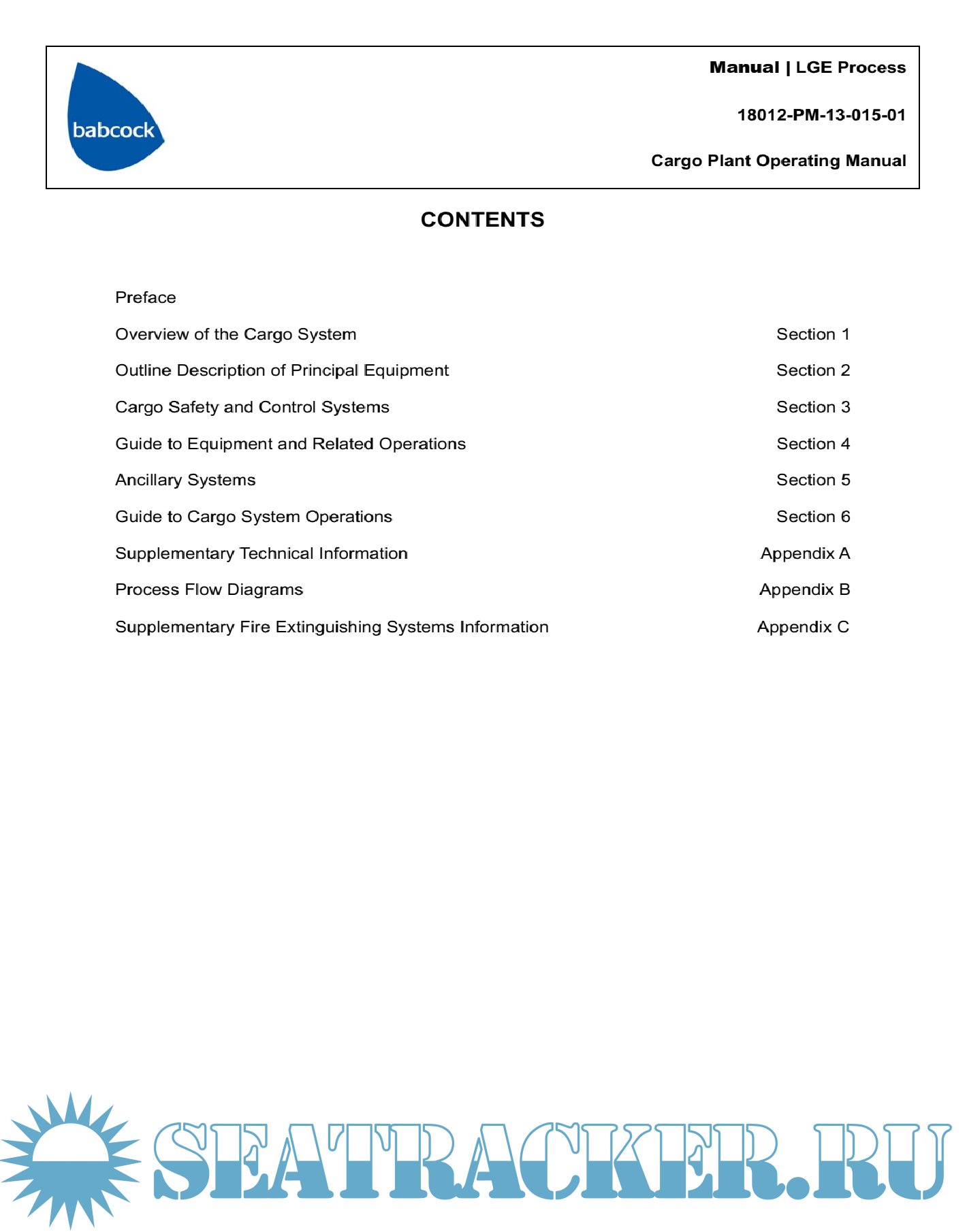 Year: 2019 Language: english Author: Babcock LGE Genre: Manual Format: PDF Quality: eBook Pages count: 450 Description: This operating manual has been written and produced by LGE Process Ltd., (hereinafter referred to as LGE), to describe the basic operational requirements for the subject vessel trading in various cargoes and to briefly outline the components comprising the cargo handling system. Appendix A of Volume 1 contains general technical information which will be of use to operators, both with and without LPG tanker experience, and gives an indication of the performance potential of both the system and some of the components within the system. Basically, the manual is a guide to system conditions and should not be confused with detailed equipment descriptions that can be found in the manufacturer's handbooks. Where considered essential, certain safety aspects are highlighted - the comments in this manual however are not intended as a substitute for a complete ship's Safety Manual and/or Total Quality Manual and good safe working practices adopted therefrom. All personnel involved with the operation of this type of vessel should be clearly aware of the hazardous nature of the products carried. Officers responsible for the actual operation of the cargo plant should be fully experienced in the design philosophy, operational parameters, and limitations of the equipment under their control. The prime requisite for the safe and successful operation of the cargo system is an understanding of the principles of the system, the application of said principles and perhaps the most important criterion, the execution and supervision of operations by conscientious and well informed personnel.