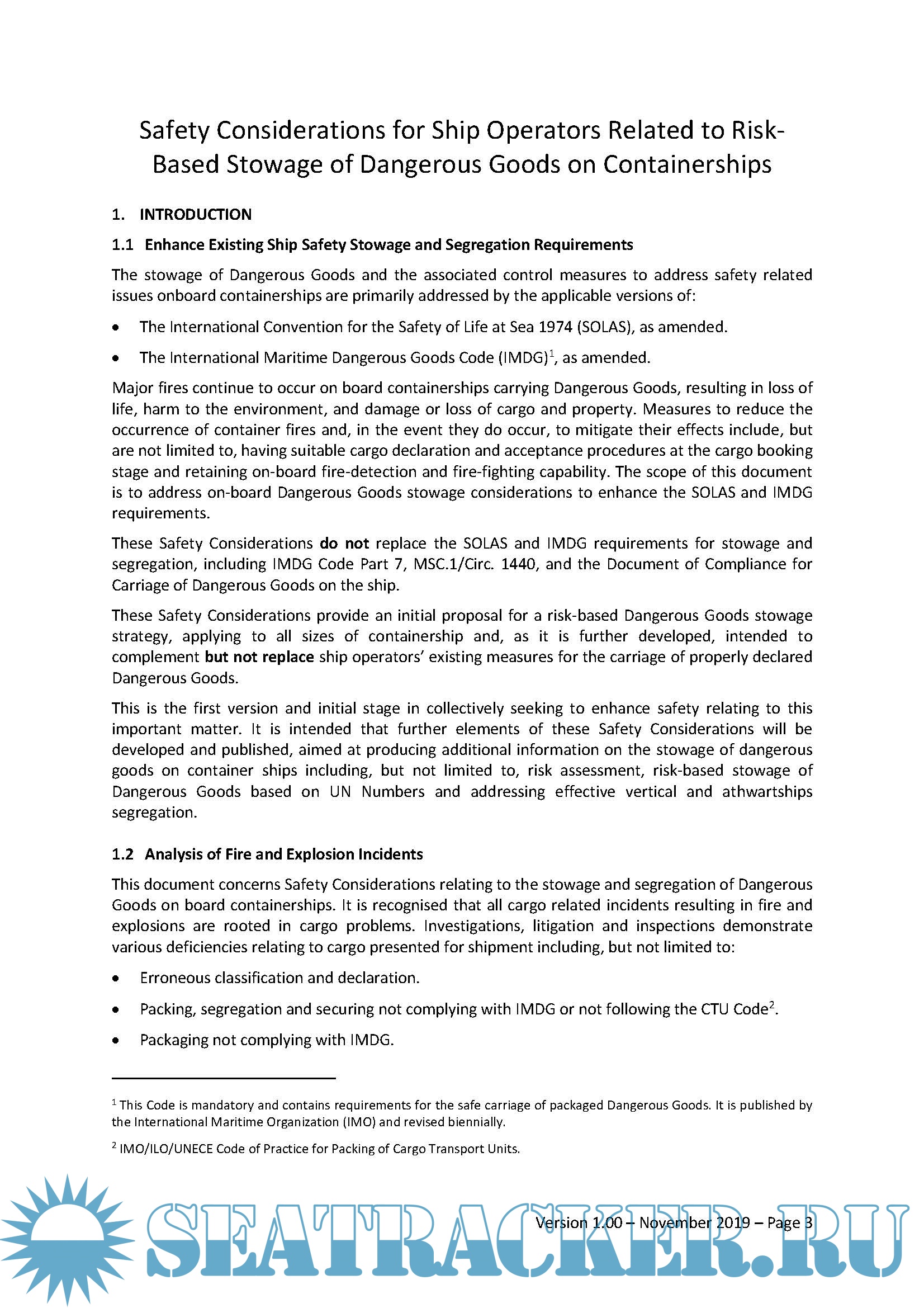 arising as they do from serious fire incidents in recent years, often relating to deficiencies in cargo