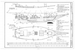 Description: The builder of KATHRYN's yawl is unknown. All of the hull frames, the stem 2nd stern poet are oak- The hull 2nd deck planks are yellow pine. The hull exterior was covered with fiberglass to approximately 1' above the waterline.