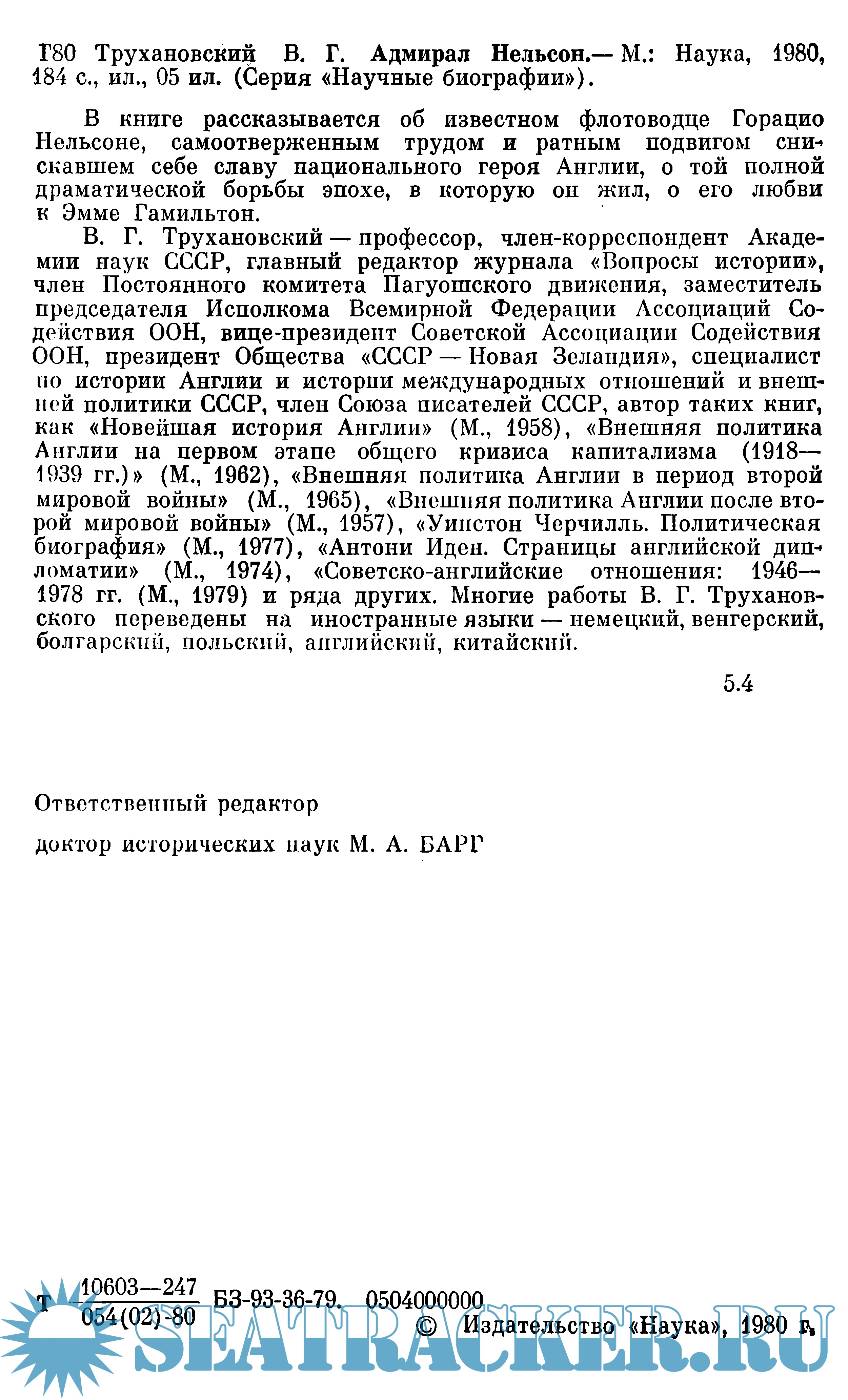 Трухановский В.Г. Адмирал Нельсон (Научные биографии). 1980