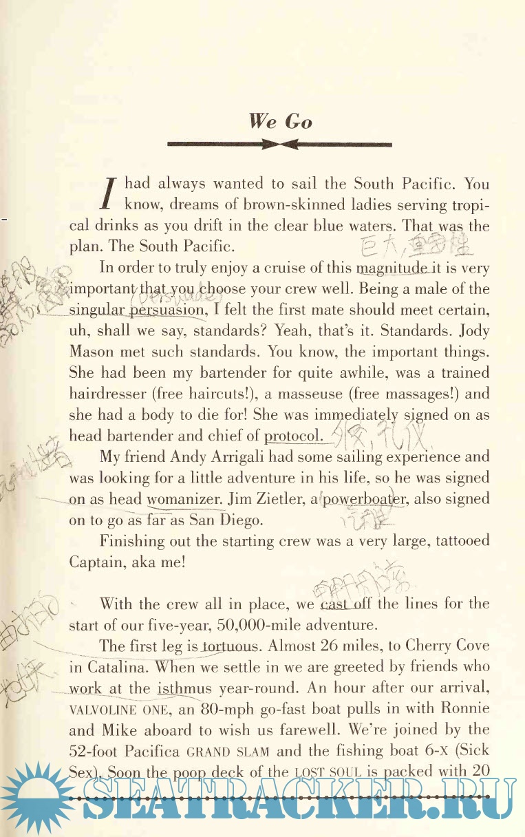 Description: Attitude is the only difference between an ordeal and an adventure. That's the adage Bob Bitchin lives by as he ventures across the Pacific and Atlantic Oceans in his 1981 Formosa 56, the LOST SOUL. Highlighting five years and 45,000 miles in a compact, analogy-laden book, Bob takes the reader from California to French Polynesia and back in a mere 83 pages; followed by another 51 pages of cruising down the West Coast and through the Caribbean on to the Azores; and then he squeezes in the Mediterranean and return passages, back to California, in the final 100 pages. ― Good Old Boat