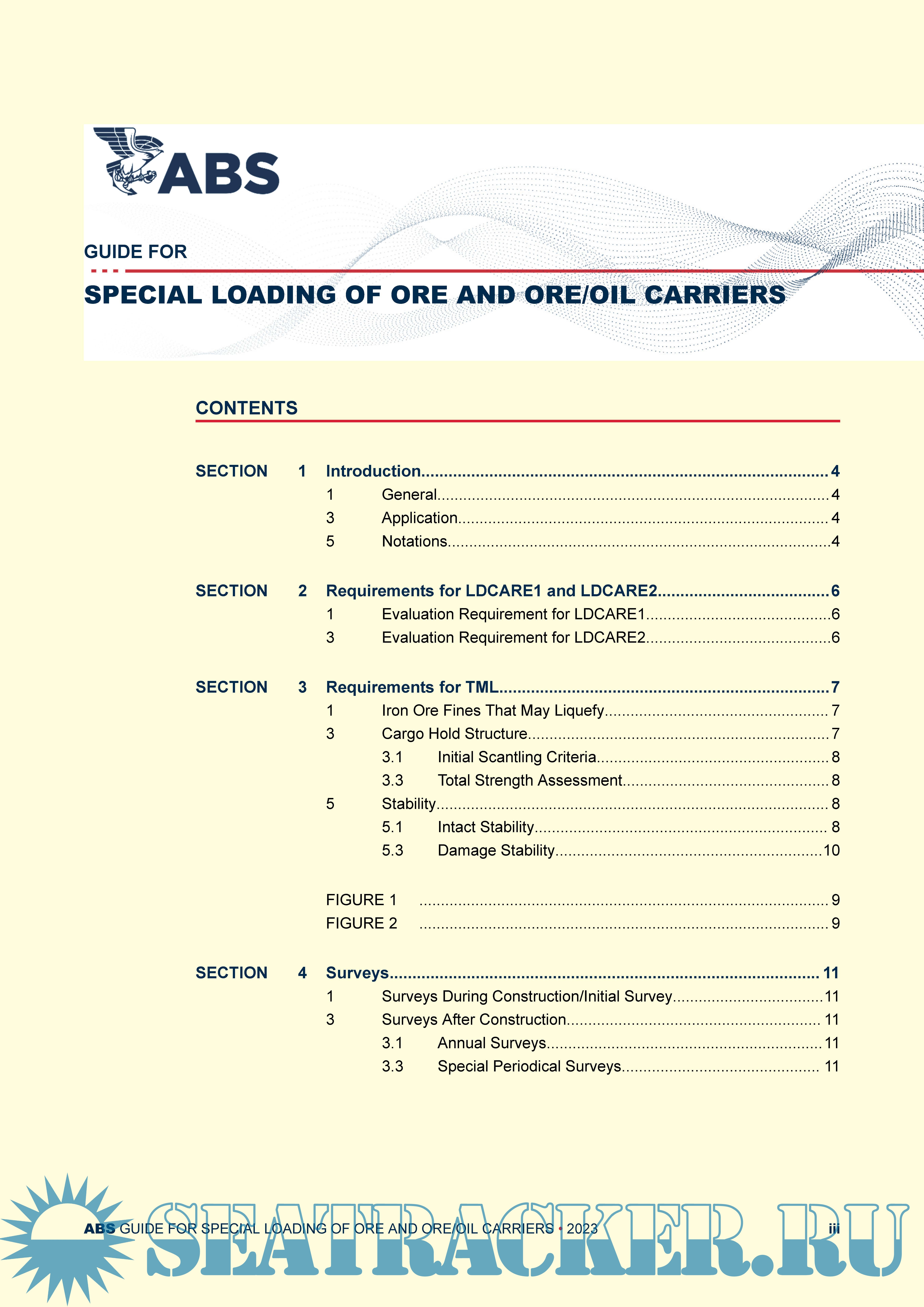 Year: 2023 Language: english Author: ABS Genre: Guide Format: PDF Quality: eBook Pages count: 12 Description: With the drive for increasing loading and unloading efficiency at many ore cargo terminals, there is a strong desire in the shipping industry for optional classification notations for vessels carrying ore cargoes that are compatible with the high loading rates at these terminals. This Guide is developed and issued to address this demand with design and loading guidance. The evaluation procedure and technical requirements are to be used for verifying the eligibility of a vessel for the optional notations LDCARE1 (Loading Care 1) and LDCARE2 (Loading Care 2). This Guide to the hull structure constructed to the Marine Vessel Rules is to be properly maintained throughout the vessel's service life and the vessel is to be operated within the loading envelope curves in the approved Loading Manual and Loading Program. issue February, 2023