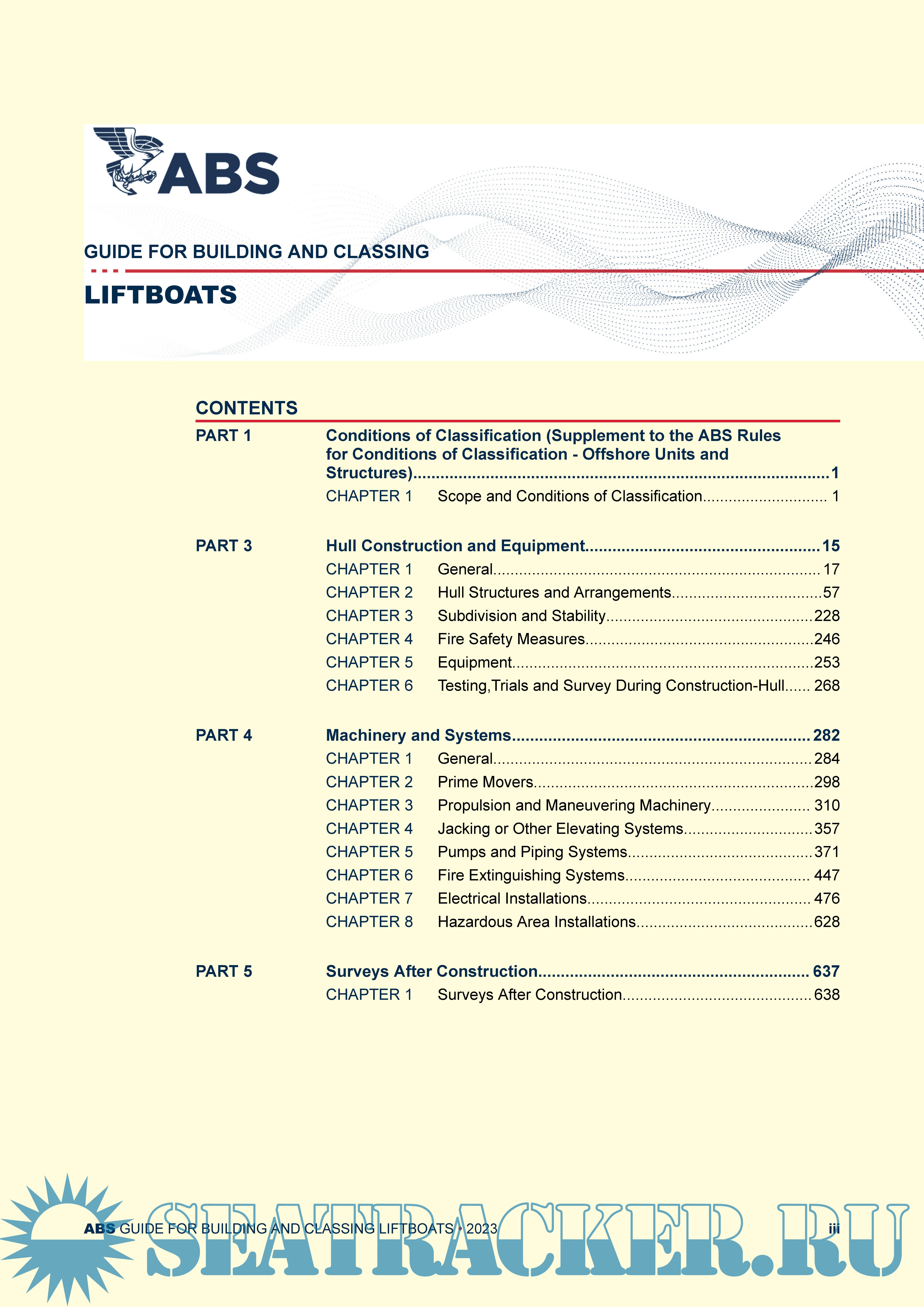 Year: 2023 Language: english Author: ABS Genre: Guide Format: PDF Quality: eBook Pages count: 674 Description: This Guide was developed for the Classification of Liftboats and specifies the requirements for design,construction and survey after construction of the Liftboat (including hull structure, equipment andmachinery systems) for use by designers, builders, owners and operators in the offshore industry. Edition January, 2023