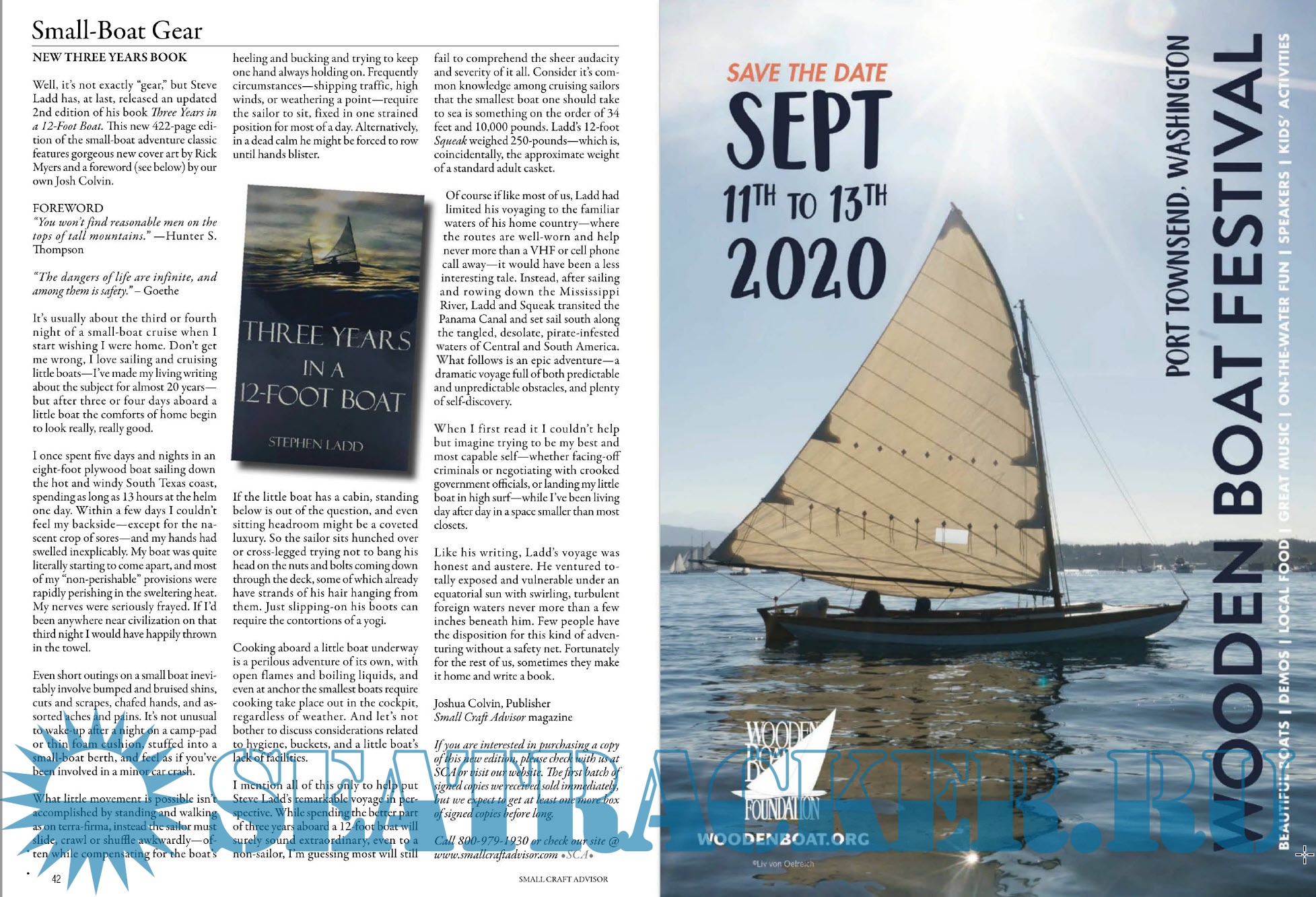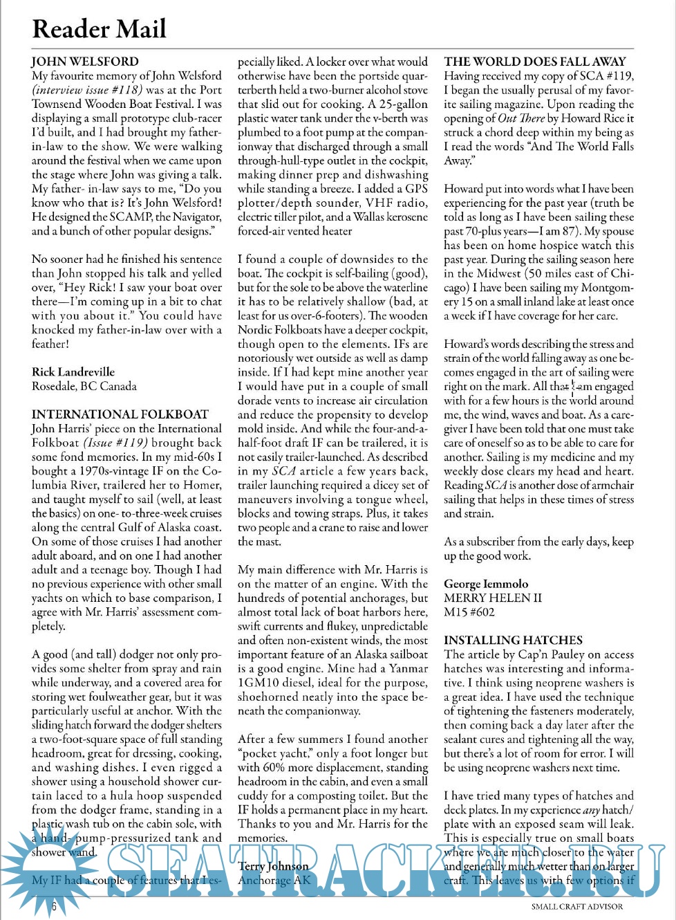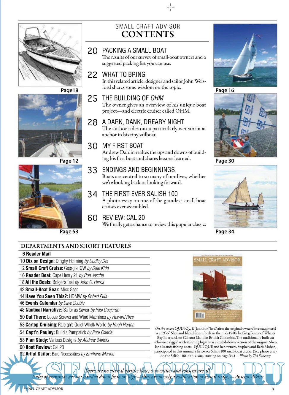 Year: 2019 Language: English Author: Craig Wagner & Joshua Colvin Genre: Periodical (magazine) Edition: #120 Nov, Dec 2019 Format: PDF Quality: eBook Pages count: 84 Description: Small boats, big adventure! The only magazine focused on small and trailerable sailboats, cruising, and adventure. Each issue features places to sail, how-to and modification articles, a plan study for the boat builder, and a feature-length review of a production sailboat.