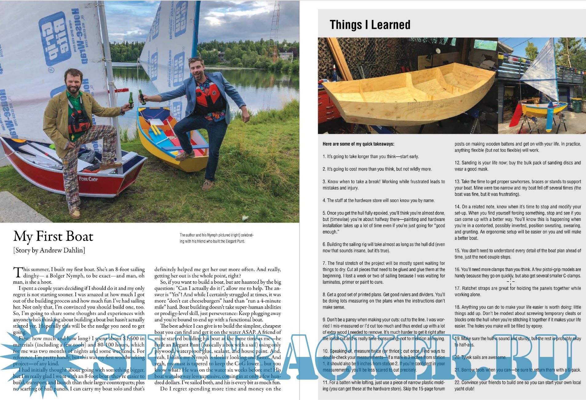 Description: Small boats, big adventure! The only magazine focused on small and trailerable sailboats, cruising, and adventure. Each issue features places to sail, how-to and modification articles, a plan study for the boat builder, and a feature-length review of a production sailboat.