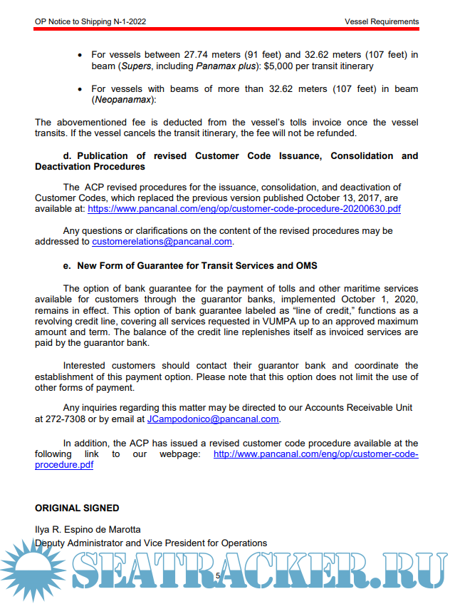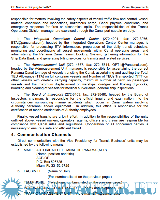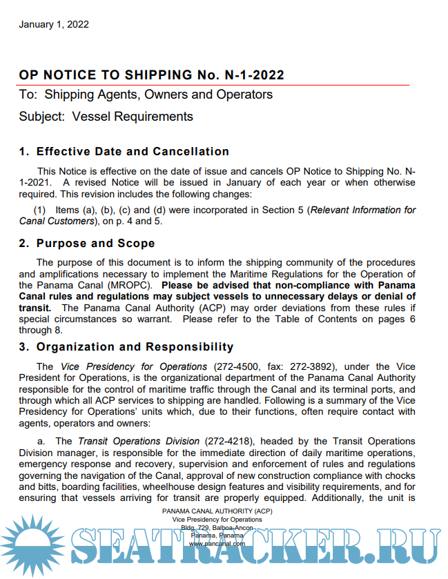 Panama Canal Vessel requirements OP notice to shipping 1 of 2022 - Panama Canal Authority [2022,…