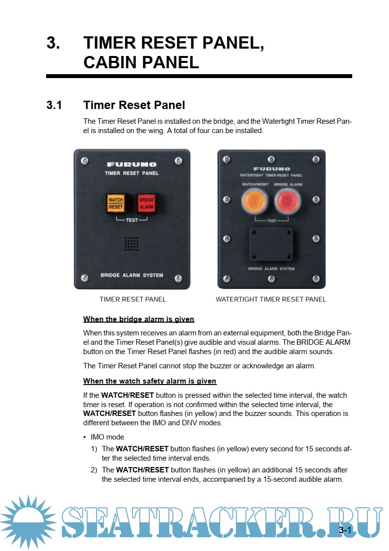 Year: 2009 Language: english Author: Furuno Electric Co., Ltd Genre: Manual Format: PDF Quality: eBook Pages count: 75 Description: The BR-1000 Bridge Alarm System collectively controls the warning notice from equipment on the bridge and monitors watch officer’s presence to prevent marine accidents. • Complies with IMO Resolution MSC.125(75) for Bridge Navigational Watch Alarm System • Collectively manages and presents alarm information on the Bridge Panel • Alarm information is sorted and displayed according to set priority • Watch safety alarm watches for unattended bridge or operator disability • Transmits alarm to backup officer if the Officer of the Watch fails to respond to active alarm or emergency call. Release consist of Operator's manual and specification description of Furuno BNWAS.