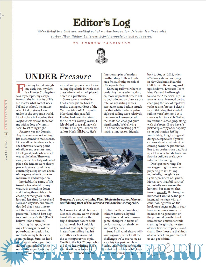 Year: 2023 Language: English Author: Andrew Parkinson - Editor Genre: Periodical (magazine) Publisher: A Bonnier Corporation Company Edition: March 2023 Format: PDF Quality: eBook Pages count: 92 Description: Cruising World is your passport for exploring the world's coastlines and oceans while voyaging under sail. Its contributors inspire and entertain through stories, pictures and videos that underscore the beauty and adventure of sailing, while providing instruction on the disciplines of seamanship, navigation and boat handling.