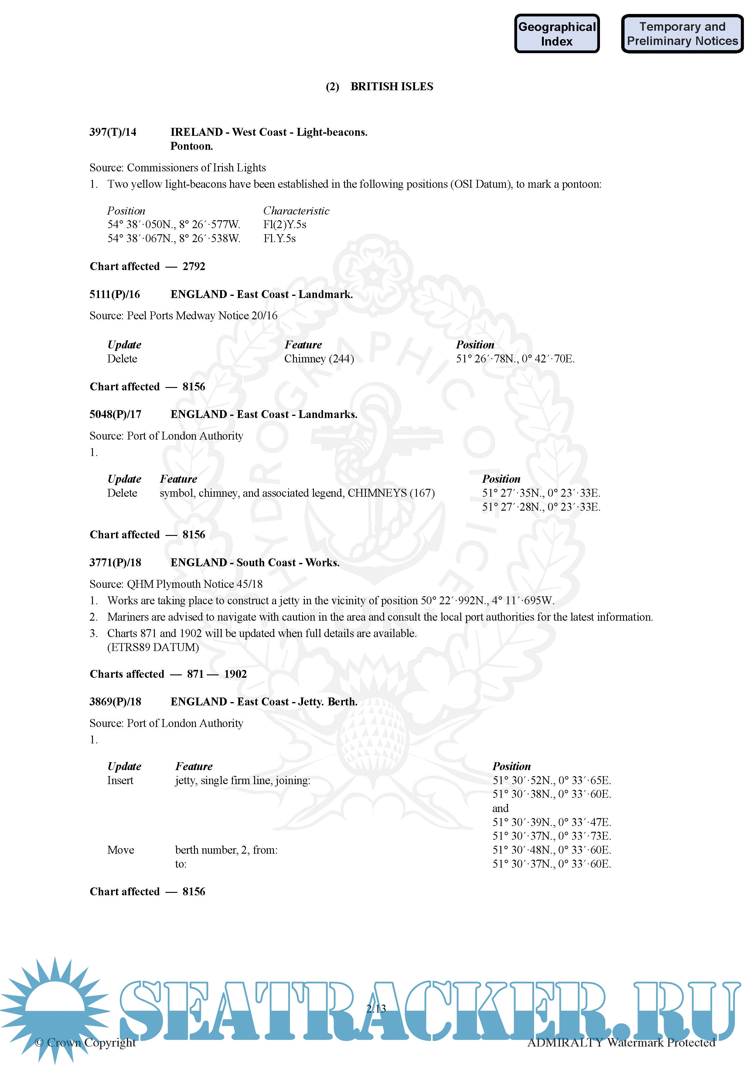 To supplement Weekly NMs, the UKHO produces an Annual Summary of Notices to Mariners (NP247). This publication contains the Annual Statutory Notices to Mariners Numbers 1-26, a summary of Temporary and Preliminary Notices to Mariners still in force at the start of the year, and a Cumulative Summary of Amendments to ADMIRALTY Sailing Directions. The paper version of the Annual Summary of Notices to Mariners is published annually in January.