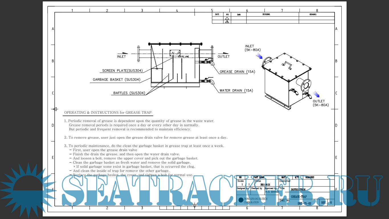 Year: 2012 Language: english Author: IL Seung Co.,Ltd Genre: Manual Format: PDF Quality: eBook Pages count: 51 Description: Sewage treatment plant ISS series treats waste water with a large amount of fixed contact media. Model >> ISS -35N -The way in which the waste water is oxidized and decomposed by microorganisms (bacteria) attached to fixed contact media -Adoption of Feed-back system of solid matter and activated carbon -Sludge production is low due to the long solids retention time -Each tank can be divided and replaced -Low maintenance cost and easy maintenance (Activated Carbon provides much lower maintenance cost than Membrane type.)