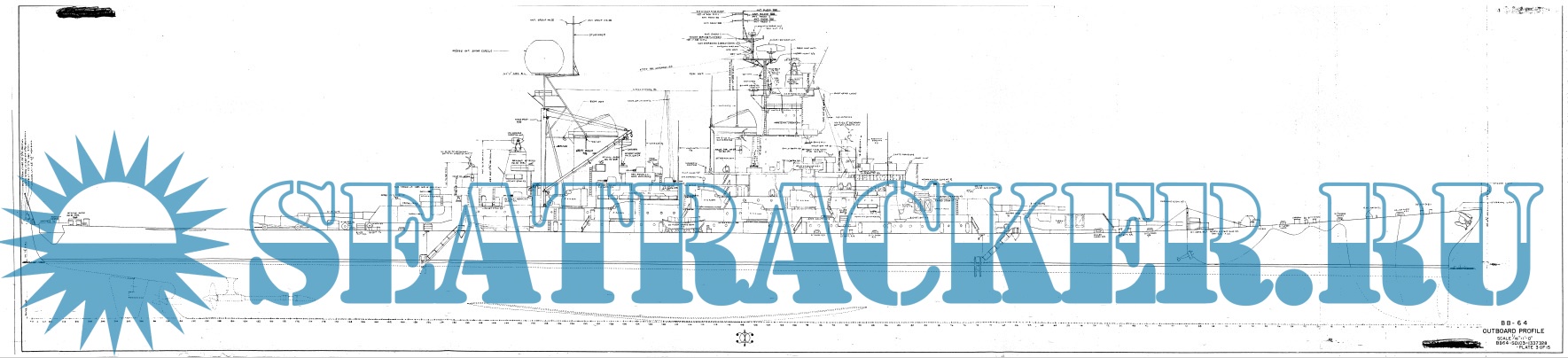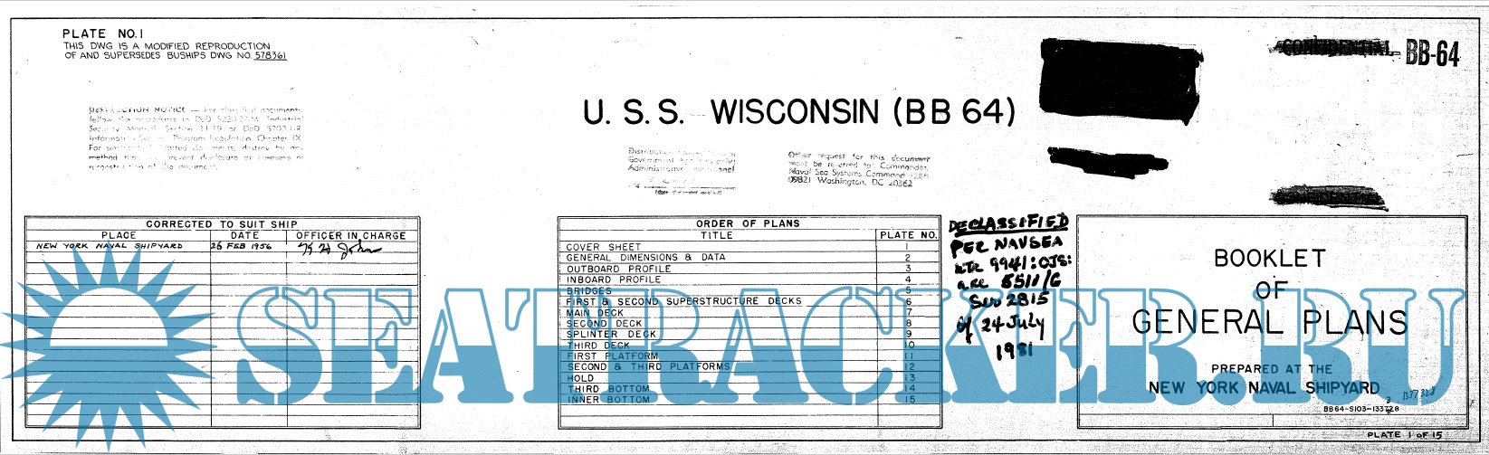 Description: 15 sheets of working drawings of the battleship USS Wisconsin (BB-64) as of 1956