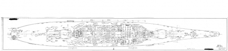 15 sheets of working drawings of the battleship USS Wisconsin (BB-64) as of 1956