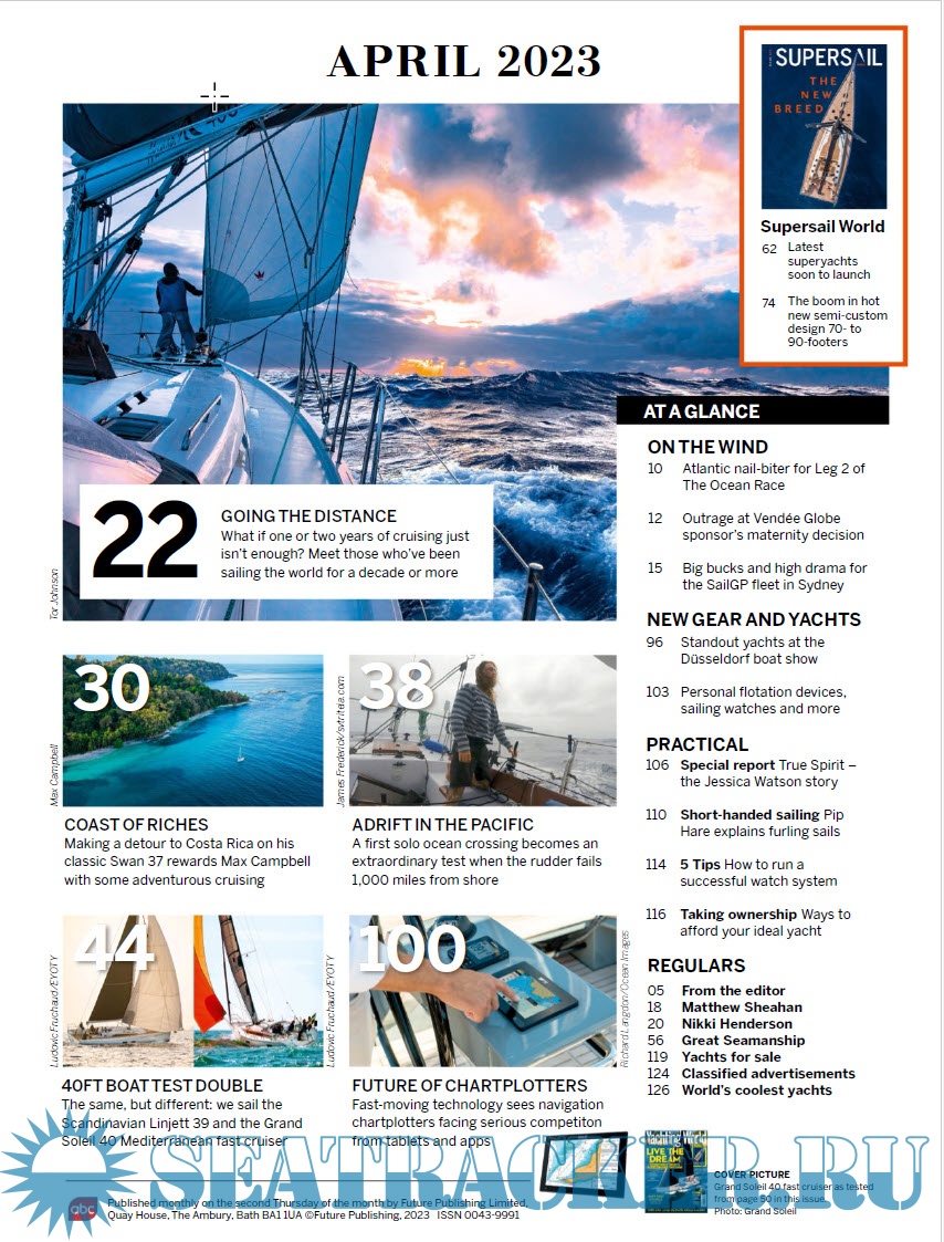 Year: 2023 Language: English Author: Helen Fretter – Editor Genre: Periodical (magazine) Publisher: Future Publishing Limited Edition: April 2023 Format: PDF Quality: eBook Pages count: 128 Description: Yachting World has had its finger on the pulse of sailing since 1894 (though some of us joined a little more recently). We reckon we are the most enthusiastic sailing fans in the world: we love boats of all kinds, modern and classic, we like racing and cruising, are fascinated by innovation yet revere tradition, and nothing that floats is too big or too small for our tastes.