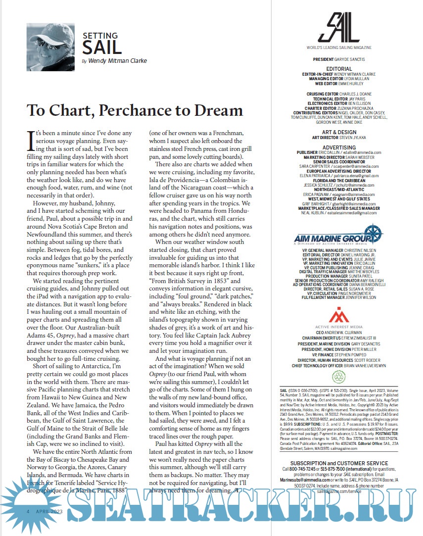 Year: 2023 Language: English Author: Editor-In-Chief Wendy Clarke Genre: Periodical (magazine) Publisher: Active Interest Media Edition: April 2023 Format: PDF Quality: eBook Pages count: 84 Description: SAIL Magazine is the magazine of record on the sailing way of life. Whether it’s cruising, racing, or lifestyle, our editorial mission is to inspire, educate and entertain sailors of every kind and to celebrate the sport in words and images.