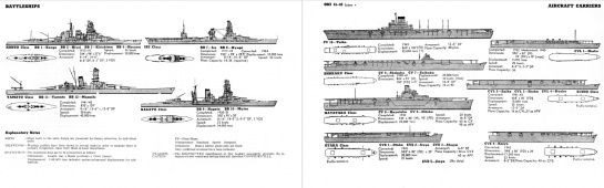 Each of the major warships and each class of the lesser vessels is shown in photographs of the real thing and/or shots of beautifully made models. For the more significant ships, there are multiple views, demonstrating the appearance of the ship when seen from various angles and from the air; and each is also depicted in a tinted set of profile and plan drawings. A data table for each class lists the vital statistics, including displacement, dimensions, armament, speed, endurance, machinery, etc., and there is also a special section detailing the tactics and organization of Japanese landing operations.