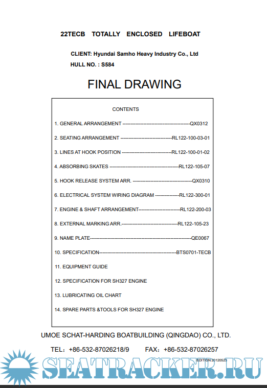 Year: 2012 Language: english Author: Umoe Schat-Harding Boatbuilding (Qingdao) Co., Ltd. Genre: Manual Format: PDF Quality: eBook Pages count: 27 Description: This is a final drawing booklet of Lifeboat with equipment on 3600 TEU class container carrier. Hopefully it will be useful for learning or reference purpose.