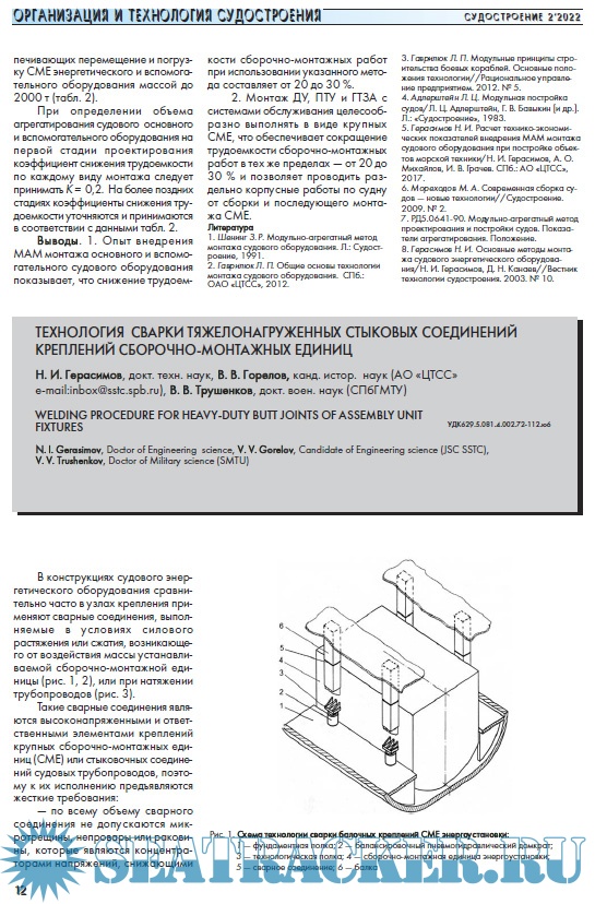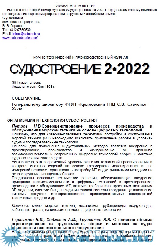 Журнал «Судостроение» январь-февраль - Горелов В.В. (зам. главного редактора) [2022, PDF]