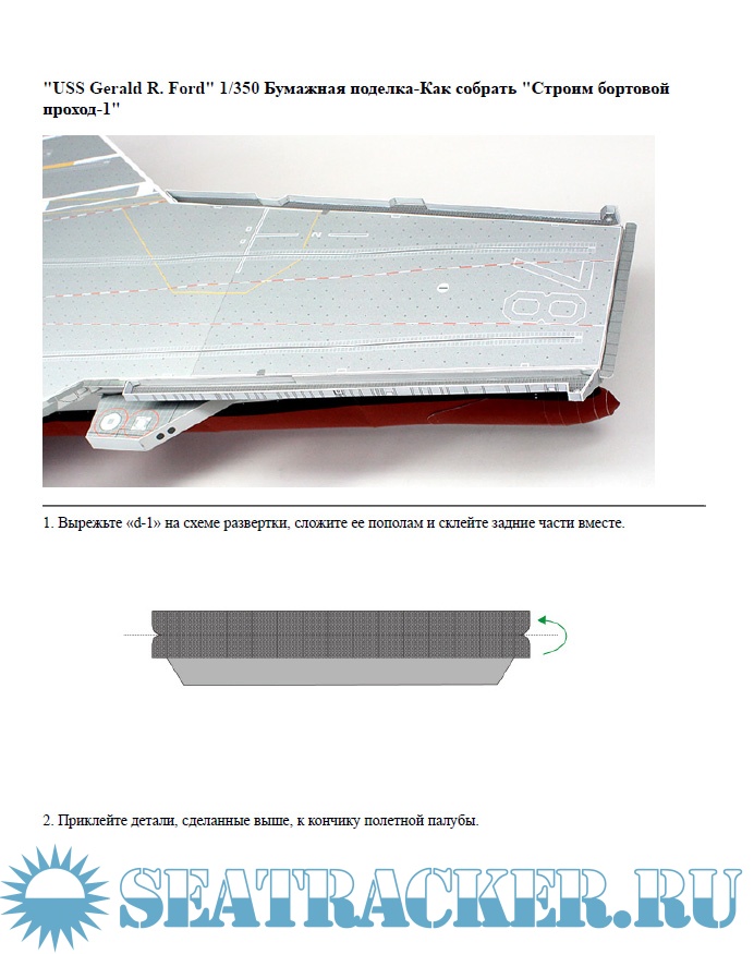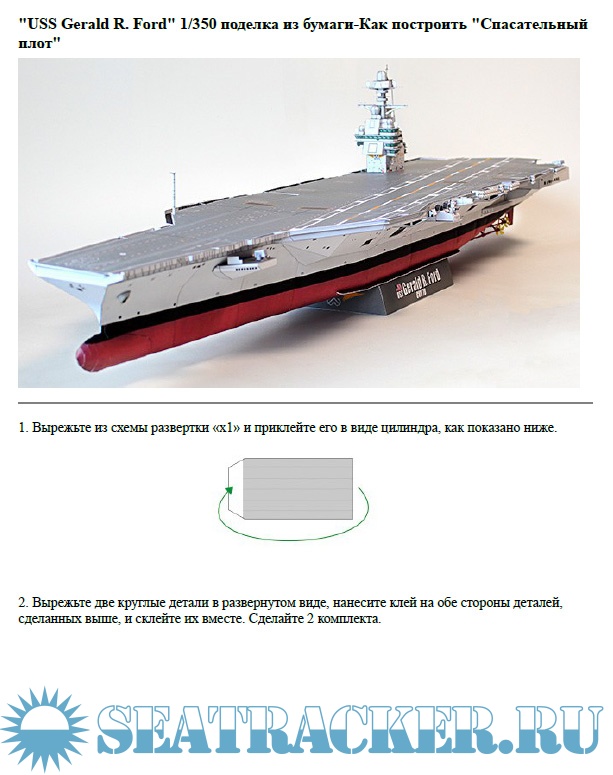 53 файла в формате .pdf с цветными выкройками и инструкциями на русском языке для изготовления бумажной модели авианосца USS Gerald R. Ford (CVN-78) в масштабе 1:350