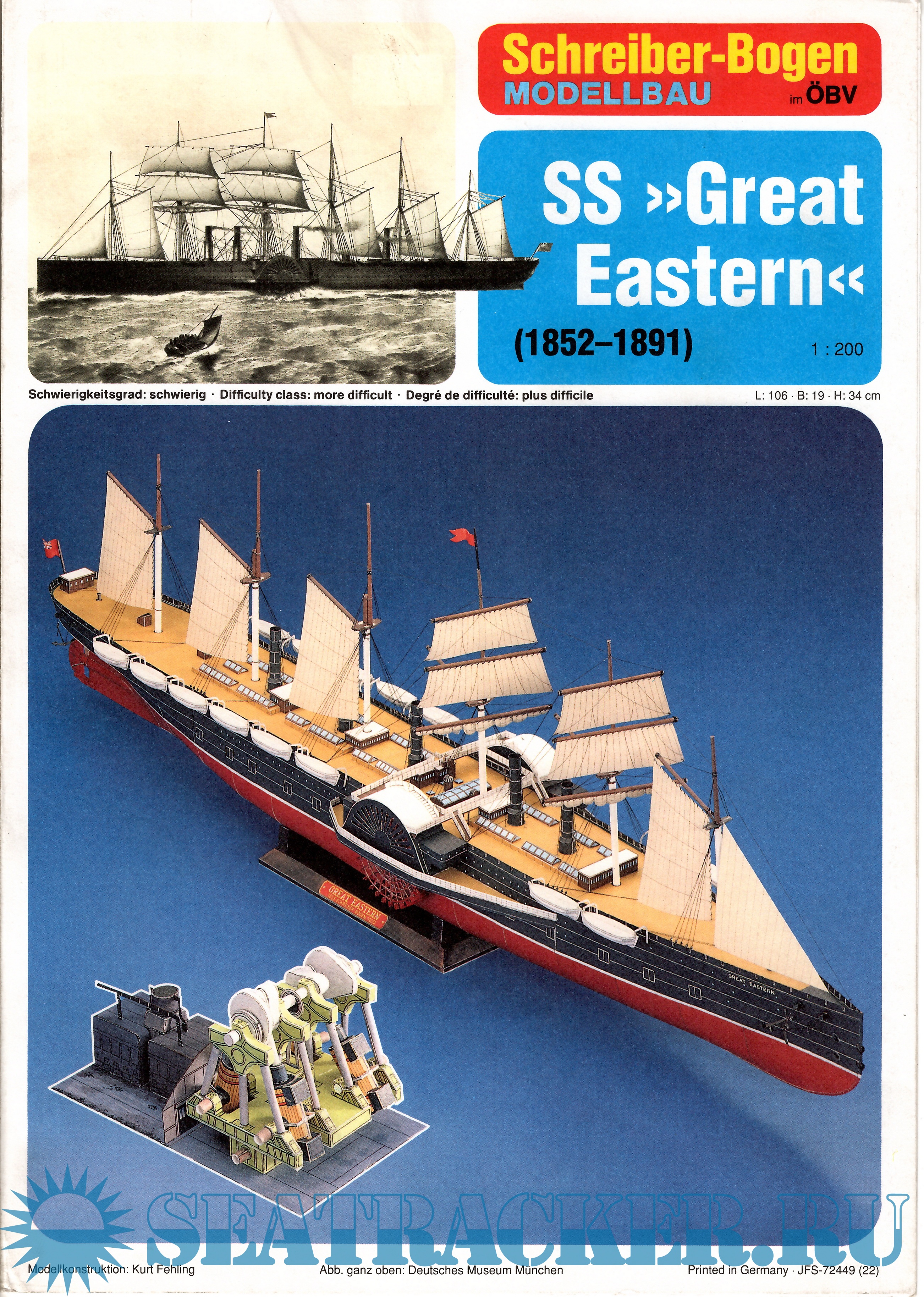 46 листов цветных выкроек и инструкций для изготовления бумажной модели пассажирского парохода SS Great Eastern в масштабе 1:200