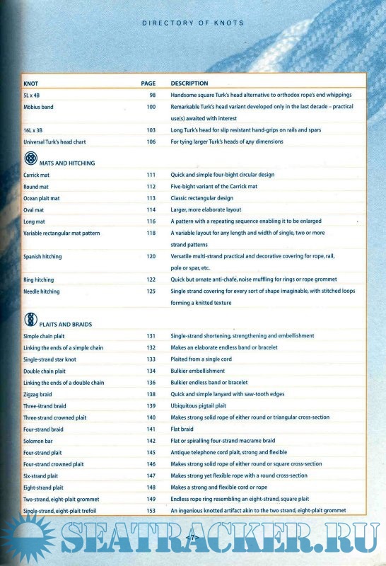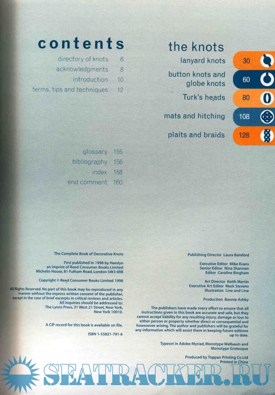 Year: 1998 Language: english Author: Budworth G. Genre: Manual Publisher: Lyons Press Edition: 1st ISBN: 1558217916 Format: PDF Quality: Scanned pages Pages count: 162 Description: A handy guidebook that includes eighty ornamental and useful knots with easy-to-follow; with step-by-step illustrations. All knots serve useful purposes, but many of the more complicated ones also create appealing shapes and interwoven textures. Knot tying is not just for those interested in sailing and other outdoor pursuits; many people find it as absorbing as solving a crossword puzzle or reading a good book. The Complete Book of Decorative Knots contains easy-to-follow expert instruction in how to tie over 80 elaborate knots, ranging form the simple to the more complex.The book is divided into five sections of different elaborate knots - lanyard knots, button knots and globe knots, Turk's heads, mats and hitching, and chains and plaits. Every section contains background information on the history, lore and accreditation of the knots featured. Color illustrations guide you step-by-step through the stages of tying each knot. As well as being attractive, the knots featured have a wide variety of practical uses, such as for hammocks, door mats and bell pulls. A useful glossary explains the terms and techniques used in the world of rope and knot tying.An invaluable source book for both the novice knot tyer and those wishing to expand their expertise, this is the ideal reference for those who wish to pursue this pleasurable craft. (7 3/4 X 10 1/4, 160 pages, photos, color illustrations, charts, icons) Additional info: About the Author Geoffrey Budworth is the co-founder of the International Guild of Knot Tyers. He was responsible for updating the classic knot guide, The Ashley Book of Knots, and is the author of The Complete Book of Knots.