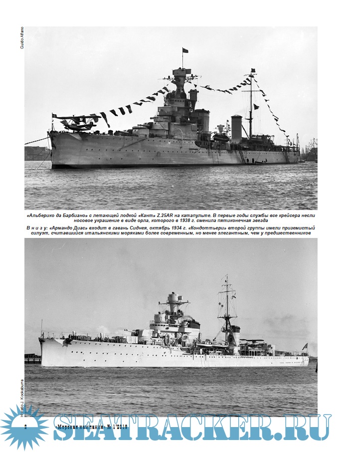 Данная публикация продолжает рассказ об итальянских крейсерах Второй мировой войны, начатых материалами о кораблях типов «Зара» («Морская коллекция» №2-2006), «Тренто» и «Больцано» («Морская кампания» №4-2007), «Монтекукколи» и «Аоста» («Морская кампания» №6-2009), «Капитани Романи» («Морская кампания» №4-2010).
