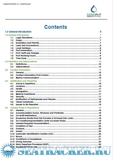 Year: 2023 Language: english Author: Qatar Energy Genre: Guide Edition: Rev.09 Format: PDF Quality: eBook Pages count: 100 Description: This document has been written for reference and use by all the port users namely masters of seagoing vessels calling Ras Laffan Port, Agents, Shipping lines, Consignees, Shippers, publishers of nautical information and or any other party that transacts business through the Port. This document titled “RLC Port Information and Regulations Guide” contains a set of localized practices and procedures designed to promote safe and efficient navigation within the waters of the port and support efforts to protect the marine environment. The practices and procedures contained in the document shall apply to all vessels in the port, including pleasure crafts and recreational vessels, as well as other users of the port, including tenants, and may be amended from time to time by the port authority as may be needed from time to time.