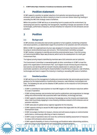 Description: OCIMF supports a position on global reduction of air pollution and greenhouse gas (GHG) emissions, which allows the marine industry to move to a net zero carbon future by meeting or exceeding the IMO GHG strategic levels of ambition.