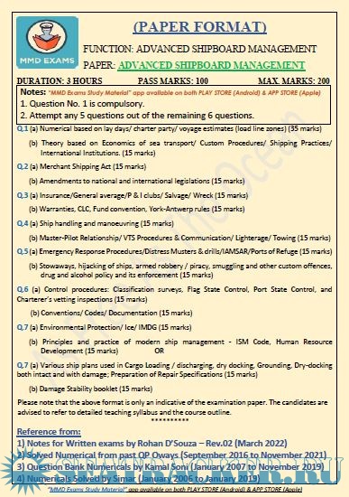 Question Paper Set for Advanced Ship Management (ASM) Mercantile Marine Department (MMD), India…