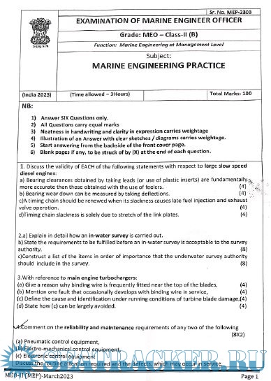 MMD Question Paper Set (March 2023) for M.E.O. Class I Examinations, India - D.G. Shipping, India…