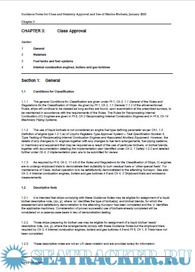 Guidance Notes for Class and Statutory Approval and Use of Marine Biofuels