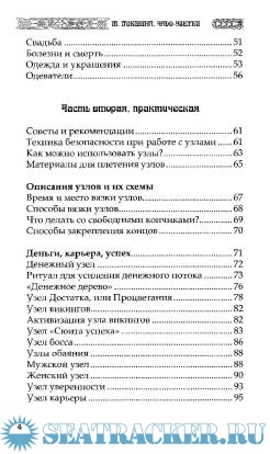 Описание: Автор приглашает вас войти в удивительный мир древнего волшебства, истоки которого - в самом сотворении Мира, прикоснуться к искусству вязания чудесных узлов. Волшебные узелки изменят вашу жизнь, позволят влиять на события, помогать близким людям и самим себе, наполнят повседневность красотой.