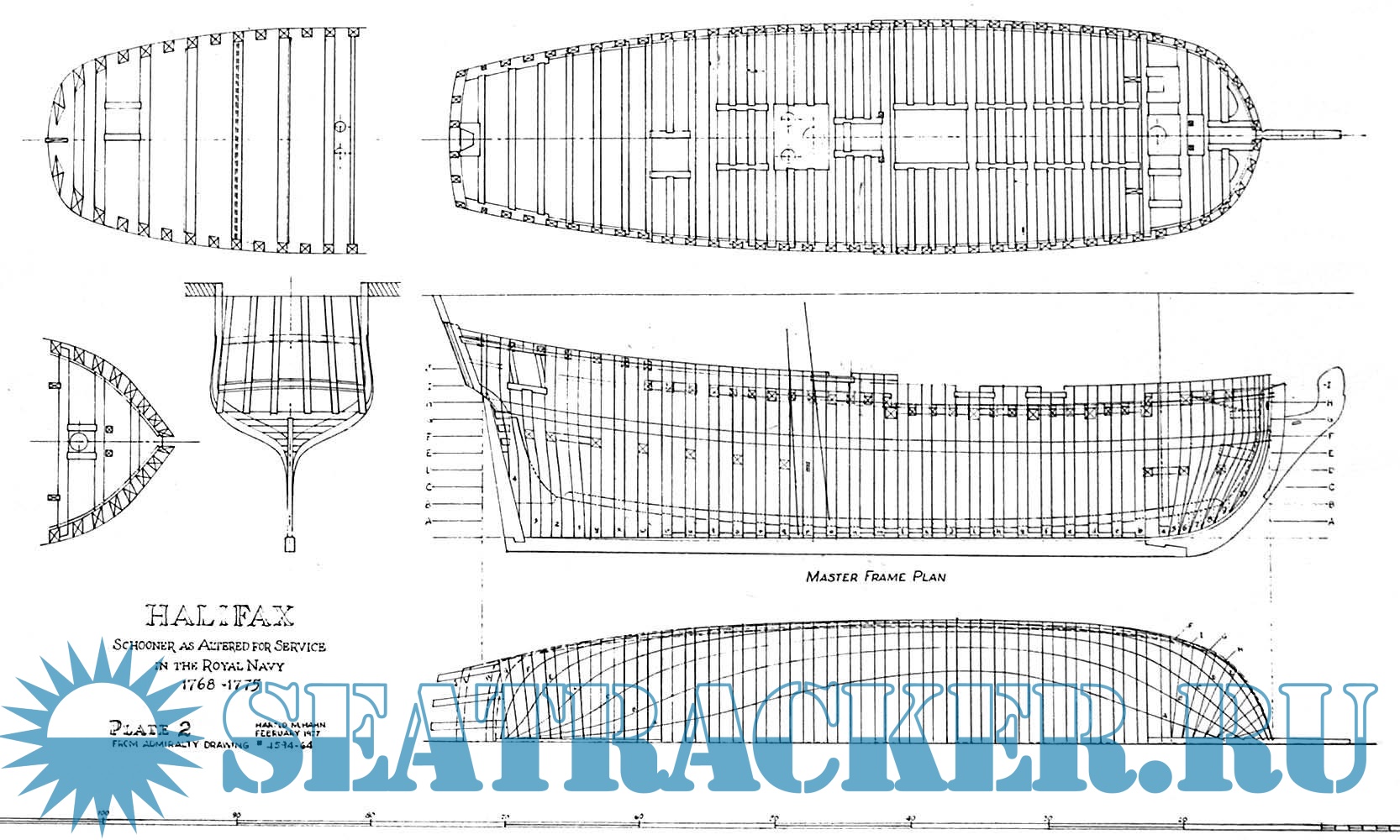 Описание: 6 листов чертежей английского парусника HMS Halifax 1768-1779 года