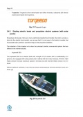 Description: Existing boat market demands highlight the need to identify eco-friendly solutions which can compete with the actual fuel based propulsions and reduce the greenhouse effect in the earth and the noise produced in the sea. Today, sailboats are the main boat type in the market that can be equipped with solar panels. Other electric boat models also exist, however they have low speed specifications. Thus, the aim of this thesis is propose an electric propulsion system equipped with solar panels that can compete with fuel-based boats in terms of speed. This electric propulsion system pretends to fulfil one of the weaknesses of the actual electric boat market, where (equipped with solar panels supplying the propulsion batteries) only some sailboats and low speed motorboats are offered. To do so, the different main components (i.e the motor, the batteries and the solar panels) have been studied and chosen. In addition, a components connection scheme has been proposed. Besides of the motor and the batteries, the solution consists of a hardtop structure with solar panels placed on the roof in order to increase the available area to place the solar panels. To verify performance conditions, the hardtop design has been tested by FEM simulation (using ANSYS Workbench and Fluent) in different conditions (solar panels weight, snow conditions and wind conditions). In addition, with the aim to increase the vision factor between the sun and the solar panels installed in the roof of the hardtop, a solar panels orientation system has also been conceptually designed. In addition, with a few modifications in the hardtop structure the proposed electric propulsion system can be installed in any boat of an approximate range from 4,5 meters to 6,5 meters. Results indicate that weight of the designed propulsion system is higher than a conventional fuel propulsion system. However, the difference is not significant and it could be assumed by the hull of the boat. In the future, it is of interest to further develop the solar panels orientation system, realize an own design of the components and to analyse in deeper detail the adaptability of the proposed propulsion system to other boat models.