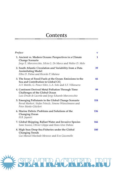 Year: 2017 Language: english Author: Arias A.H., Marcovecchio J.E. Genre: Technical book Publisher: CRC Press ISBN: 1482299437 Format: PDF Quality: Scanned pages Pages count: 337 Description: This book presents a broad overview of pollution issues facing climatic, economic, and legal globalization. Topics include changes in oceans from ancient times to the present, the importance of marine currents and changing climates, marine pollution linked to climate change (fossil fuels, global carbon dioxide, heavy metals, pesticides, plastics, emerging pollutants, and marine debris), global shipping and species invasion, global climate change in the Arctic and Antarctic environments, and regulatory responses to mitigate pollution and climate change in oceans.