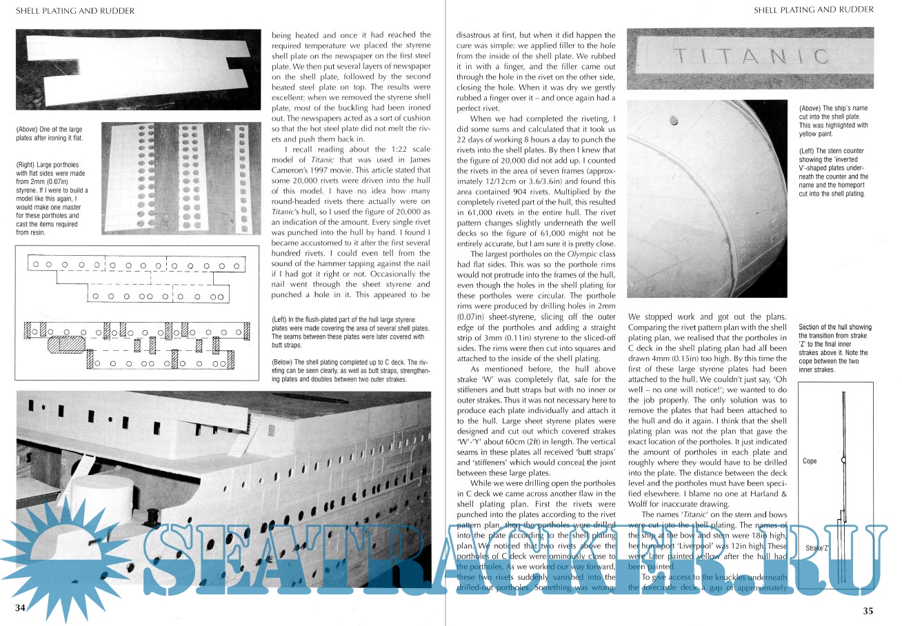 Year: 2005 Language: english Author: Peter Davis-Garner Genre: Manual Publisher: Chatman Publishing Format: PDF Quality: Scanned pages Pages count: 178 Description: RMS Titanic has had more written about her than any other ship, but surprisingly there is little information directed at the modelmaker. This superb book contains all the information needed to build a highly accurate model, down to the tiniest details of the hull's rivets. The work is based on the author's remarkable 18-foot model, built to 1/48 scale, and specially commissioned for a traveling exhibition in North America. The book contains a mass of practical information on how to construct every part of the great liner and is equally applicable to a small, static, bread-and-butter display model as to a large working version. Profusely illustrated with close-up photographs, detailed drawings, and a large collection of photographs of the prototype itself, the book also contains a complete set of plans considered to be the most accurate yet drawn. With this mix of practical information, rare photographs, and highly detailed drawings the book will appeal to all Titanic enthusiasts as well as to ship modelers.