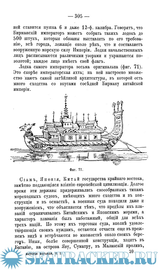 Описание: Общедоступное изложение судостроения и судоходства у всех прибрежных народов в древние времена и средневековье. \n\n?История корабля? написана русским писателем Николаем Петровичем Боголюбовым (1821-1898), бывшим моряком, старшим братом известного художника-мариниста Алексея Петровича Боголюбова. Главная цель автора - составить нечто вроде морской энциклопедии, в которой популярно и доступно для неподготовленного читателя излагается всеобщая история судостроения и судоходства. Издание содержит многочисленные рисунки в тексте. В первой части тома представлен исторический очерк древнейших прибрежных народов, у которых началось судостроение и судоходство:. Начало судостроения. - II. Судостроение у древних греков. - III. Рим. - IV. Тактика древних народов. - V. Северные народы. Во второй части, содержащей средневековую историю, на сцену морской деятельности выведены государства, образовавшиеся после распада Римской империи, подробно рассказано об их успехах в судостроении и мореплавании, об их соперничестве за морское превосходство, о использовавшихся военных и торговых судах:\nI. Мореплавание и судостроение в средние века. - II. Судостроение и судоходство в средние века. - III. Короткие суда. - IV. Тактика средневекового периода до введения огнестрельного оружия. - V. Артиллерия. - VI. Пираты. - VII. Суда антиевропейские